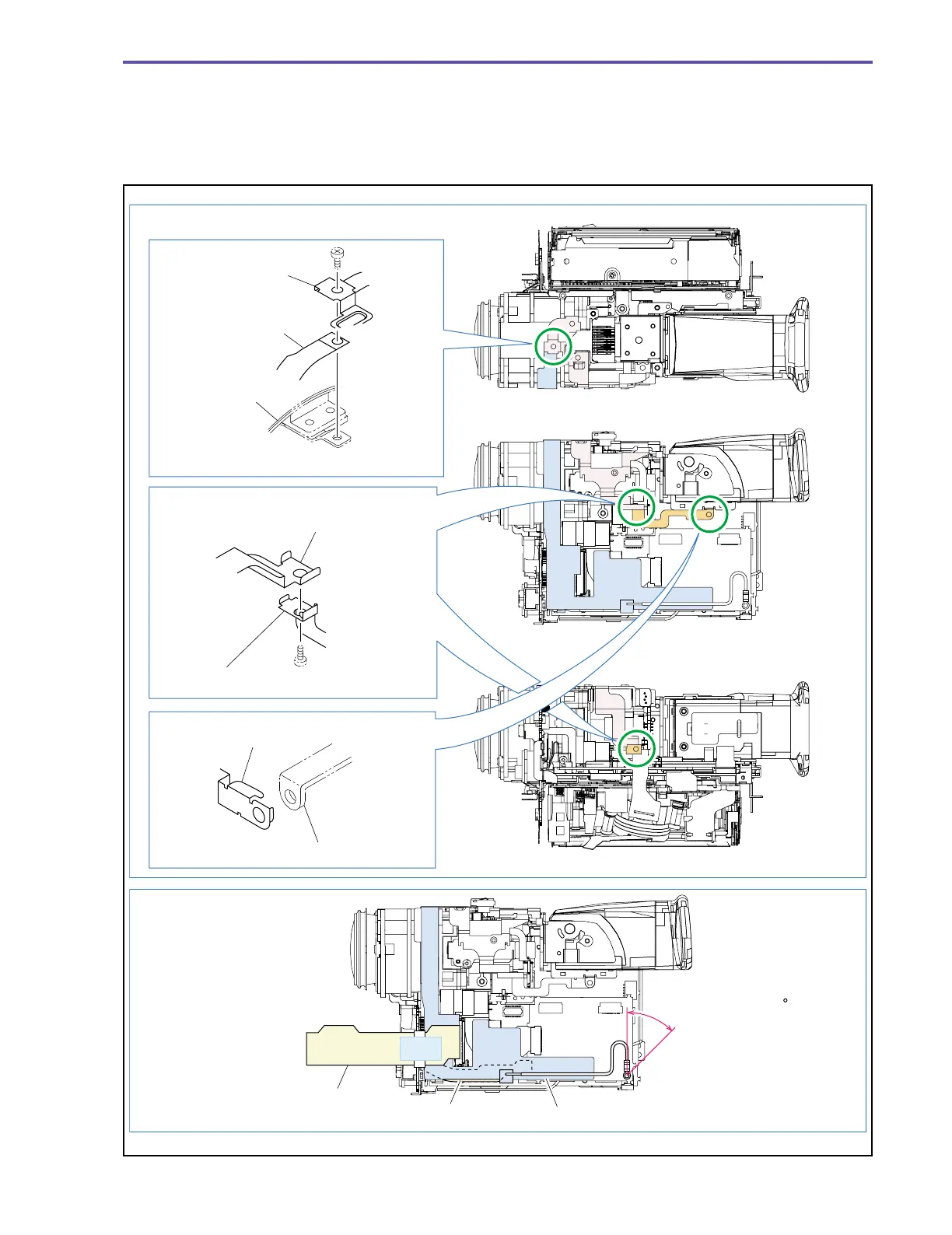 (1) Reassemble the Lens Shield, Lens Shield B, and FPC Shield Unit as illustrated below.