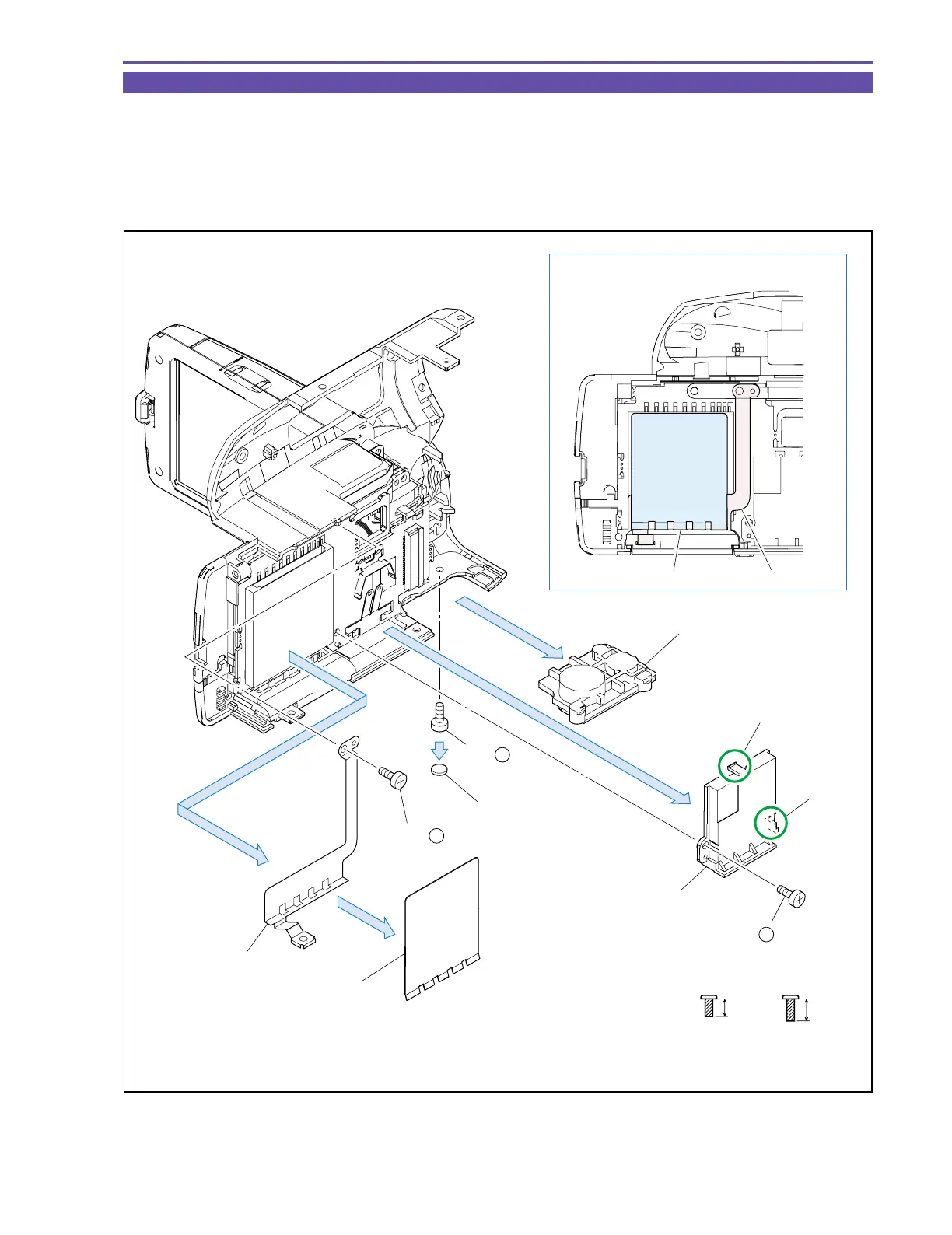 (3) Remove one screw (f × 1), disengage the claws A and B, and detach the LI Case.