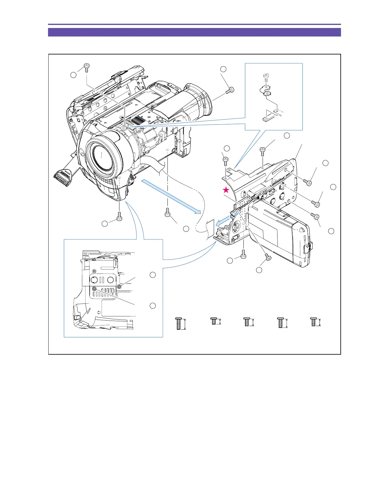 (1) Remove eleven screws (c × 1, d × 5, e × 2, f × 2, g × 1), disconnect the CN101, and detach the R-LCD Unit.