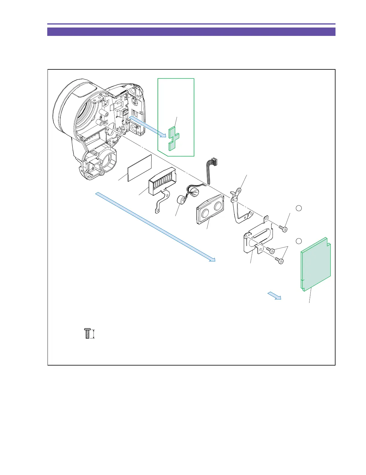 (2) Remove three screws (f × 3), and detach the MIC Plate, F Base Plate, MIC Rubber, MIC Ass’y, MIC Shield, and MIC Sheet.