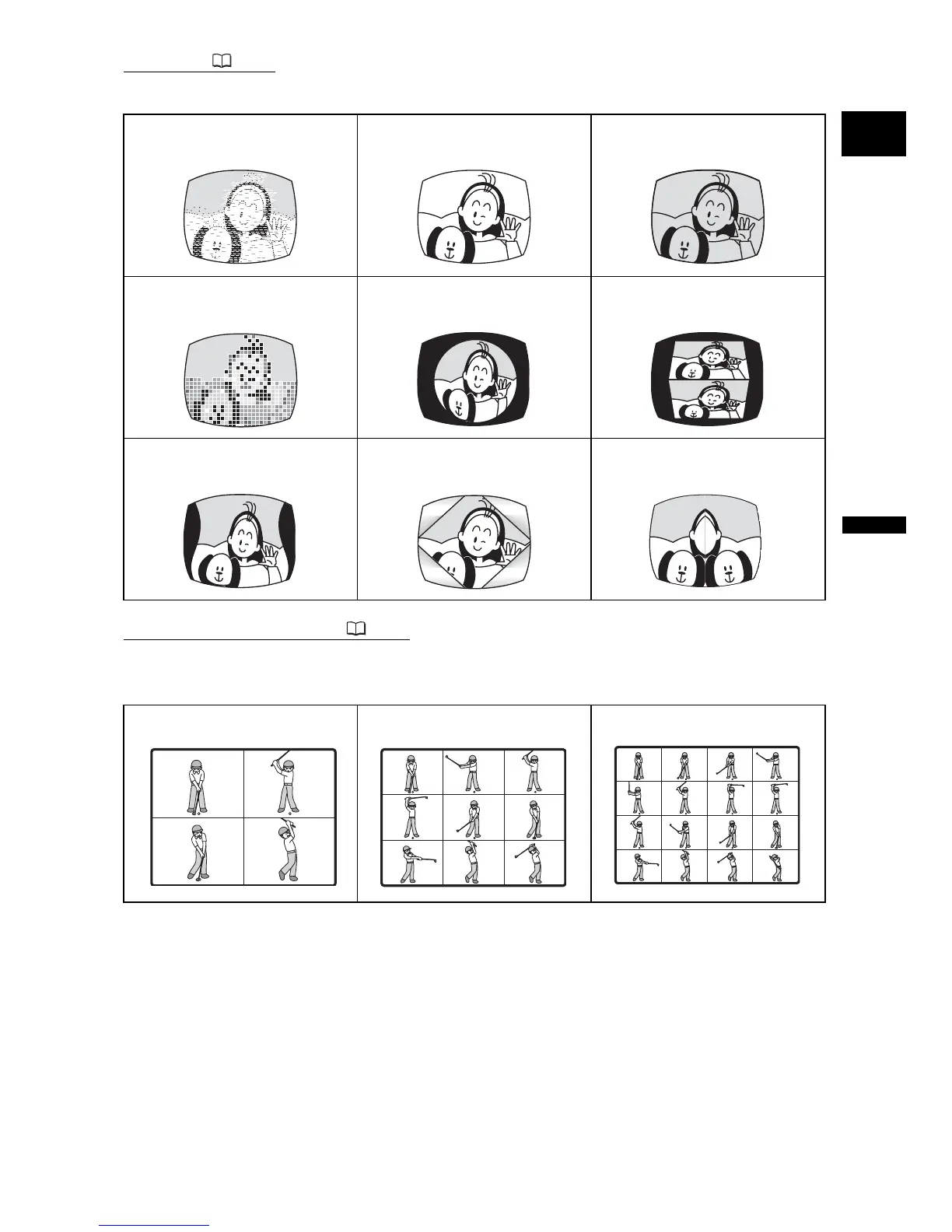 Captures moving subjects in 4, 9 or 16 sequences of still images and displays them at