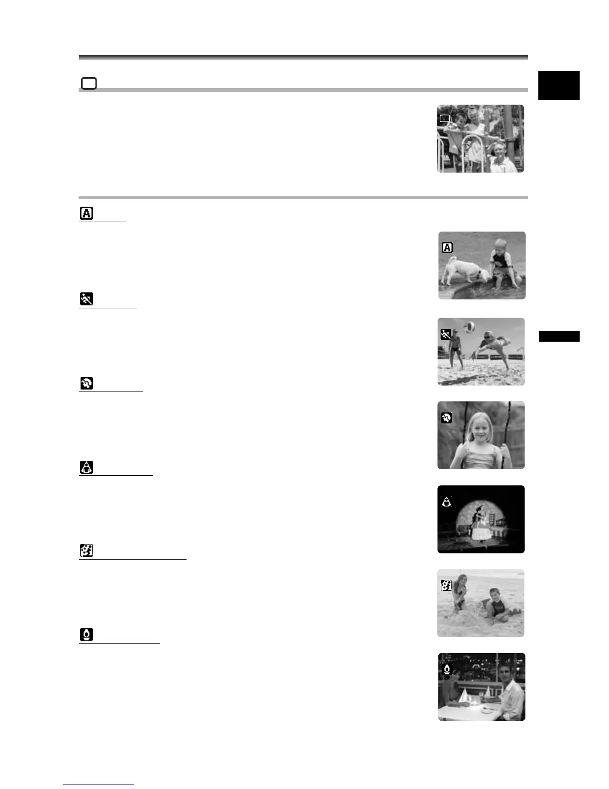 Use this mode in bright places such as a sunny beach or ski resort. It
