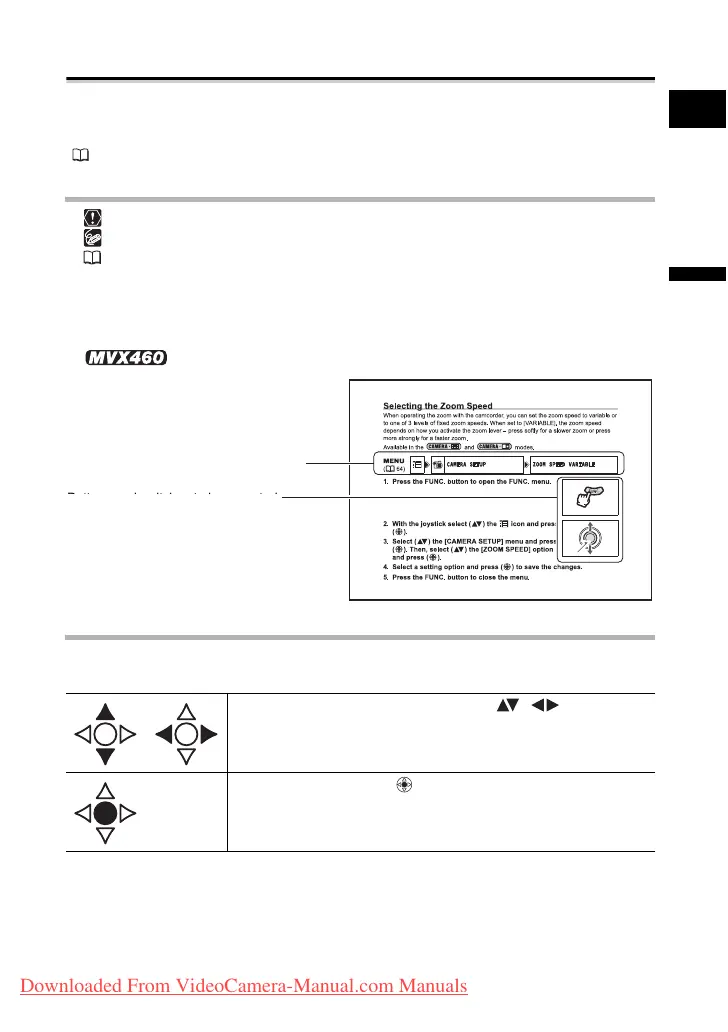 The mini joystick allows you to control many of the camcorder’s operations and to select