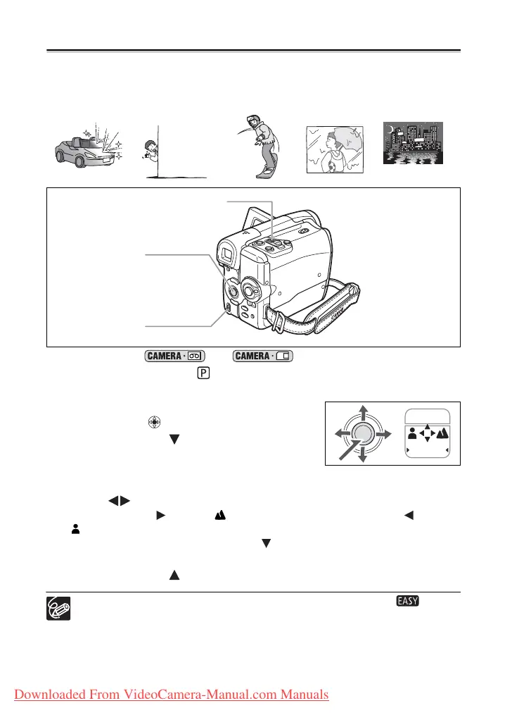 • Push the joystick ( ) towards for a farther focal distance or push it ( ) towards