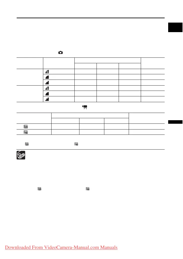 on a memory card vary according to the recording condition. The estimated figures are as