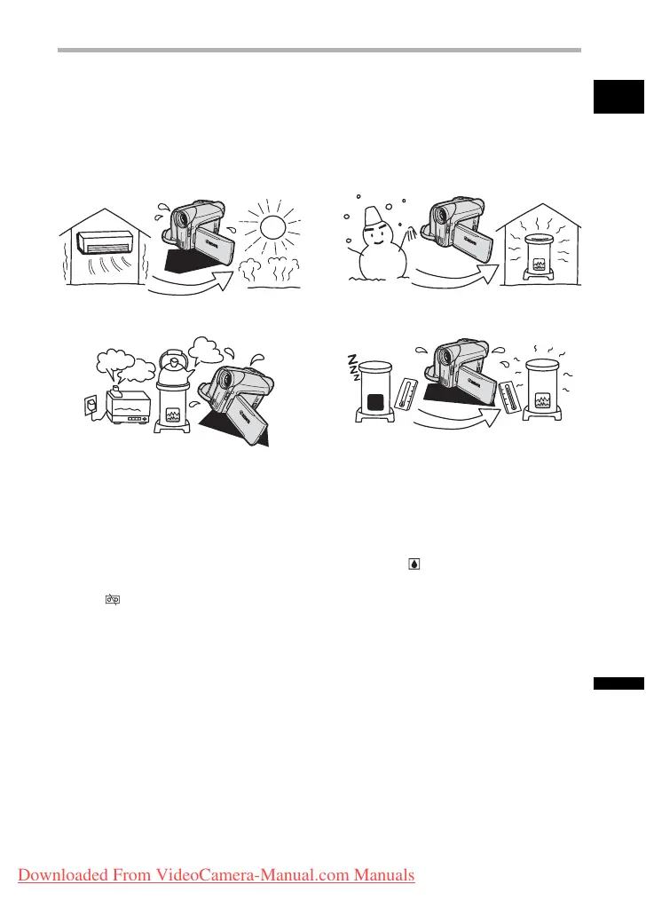 Moving the camcorder rapidly between hot and cold temperatures may cause