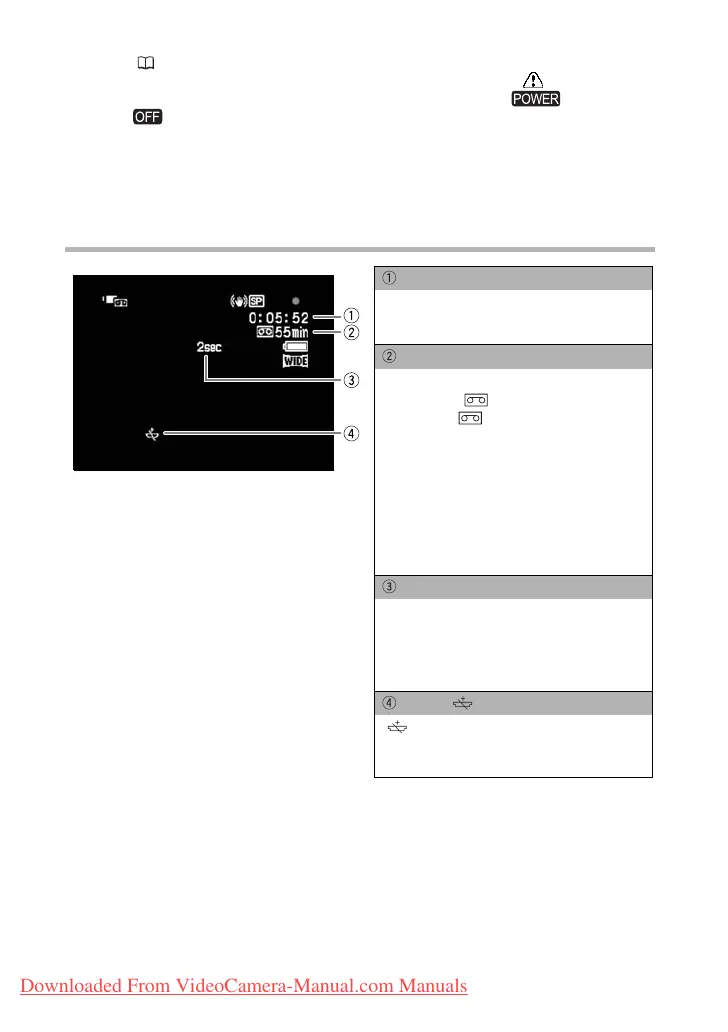 seconds before the camcorder shuts off the message “ AUTO POWER