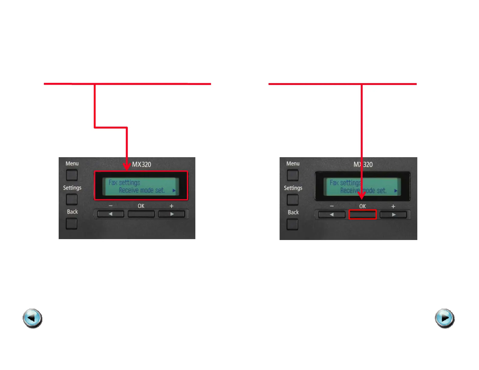 The Fax settings menu will appear. Press the OK button.