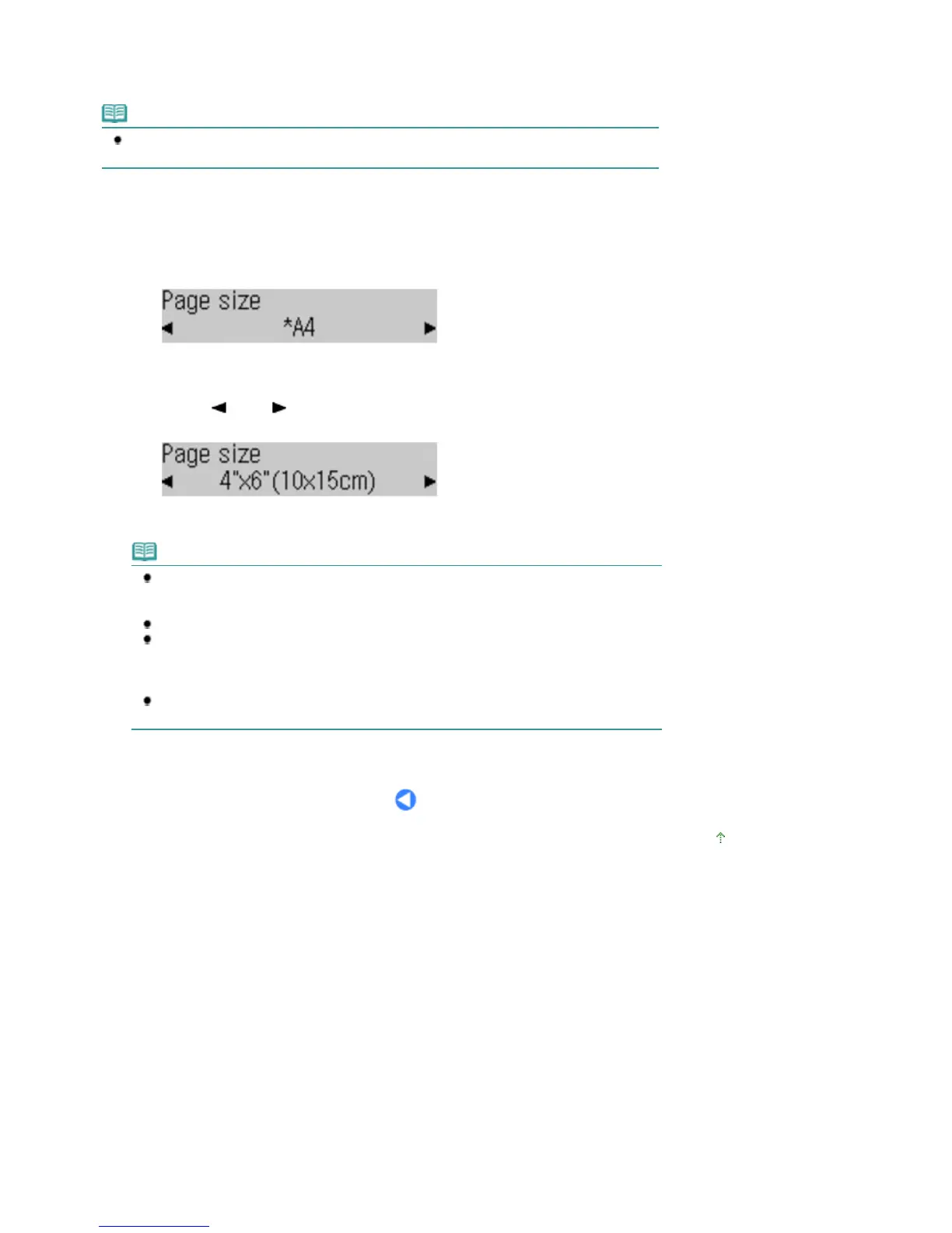 To change the settings other than Page size, press the