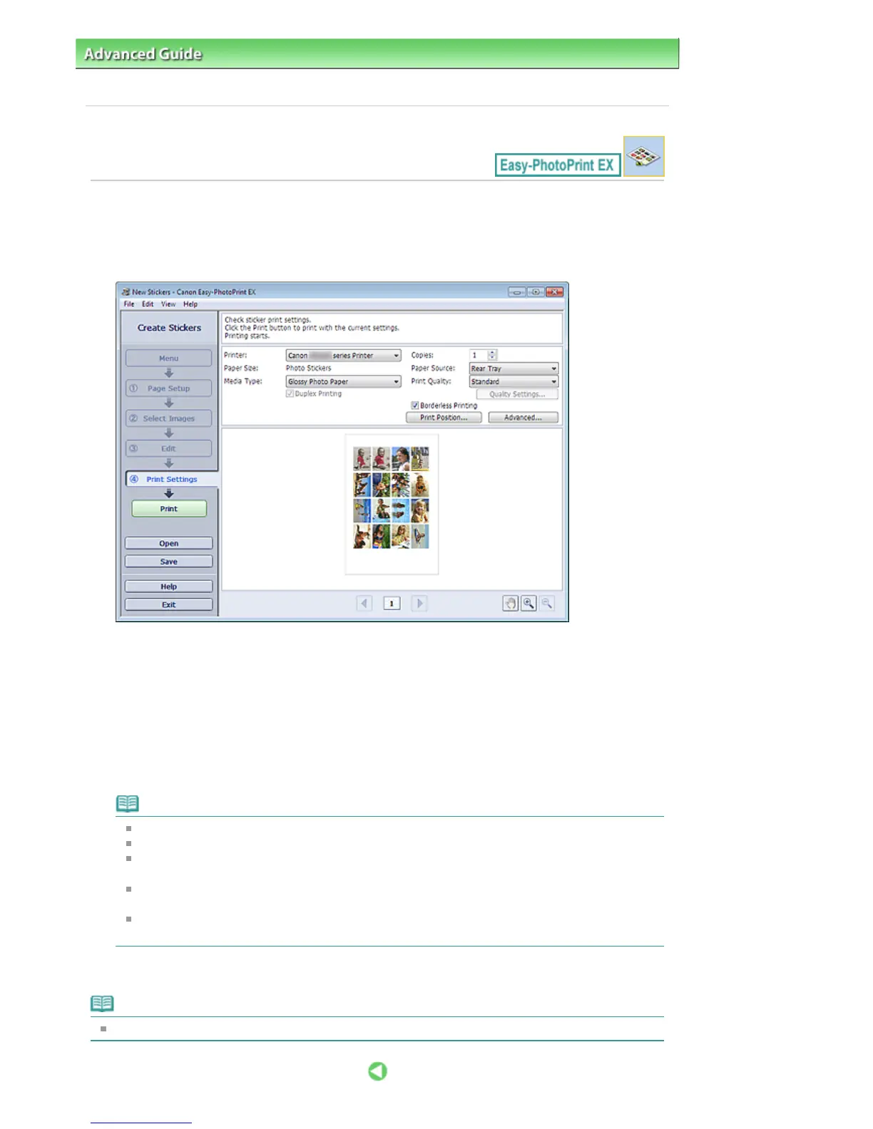 Settings dialog box. To display the Print Settings dialog box, click Advanced....