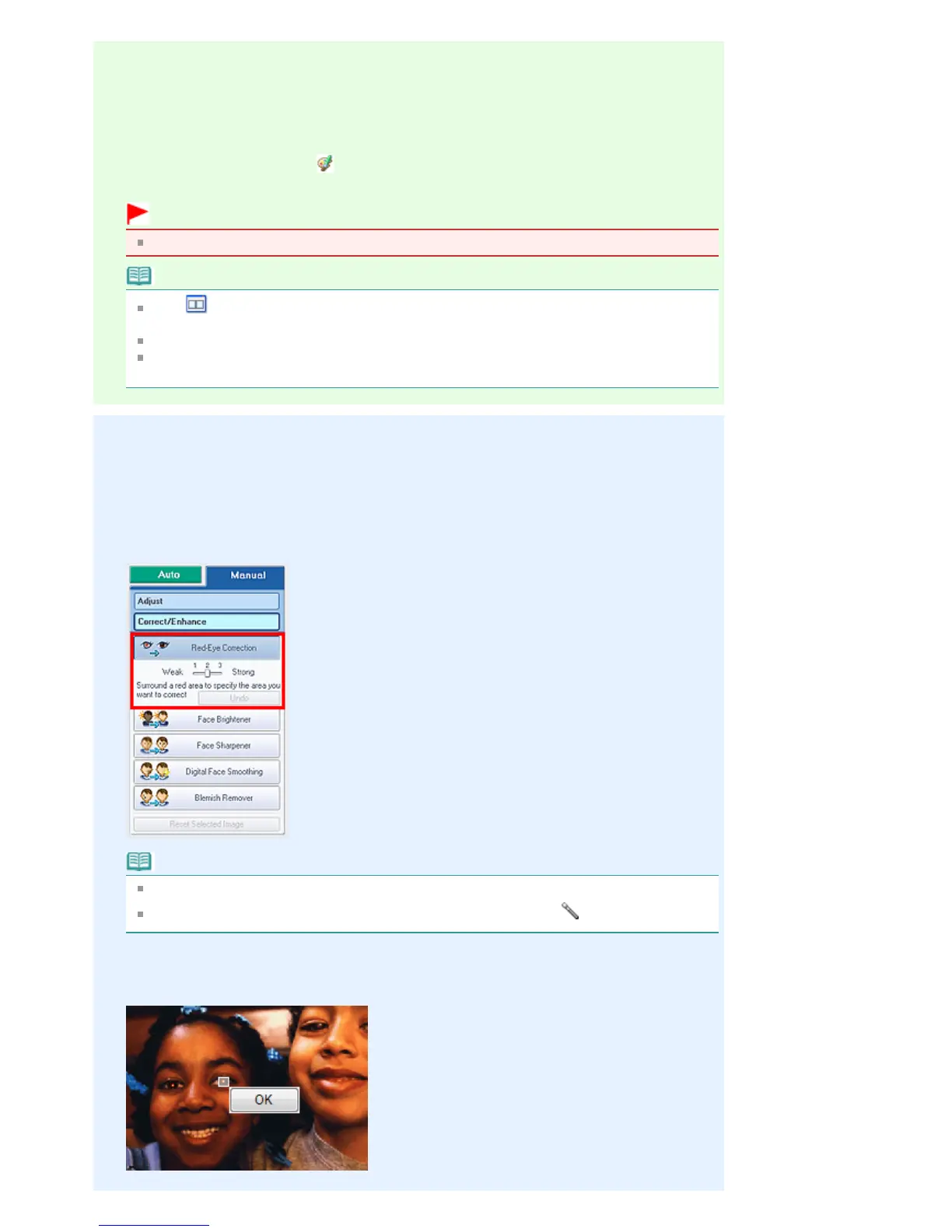 Red eyes are corrected and the (Correction/Enhancement) mark appears on the upper left of