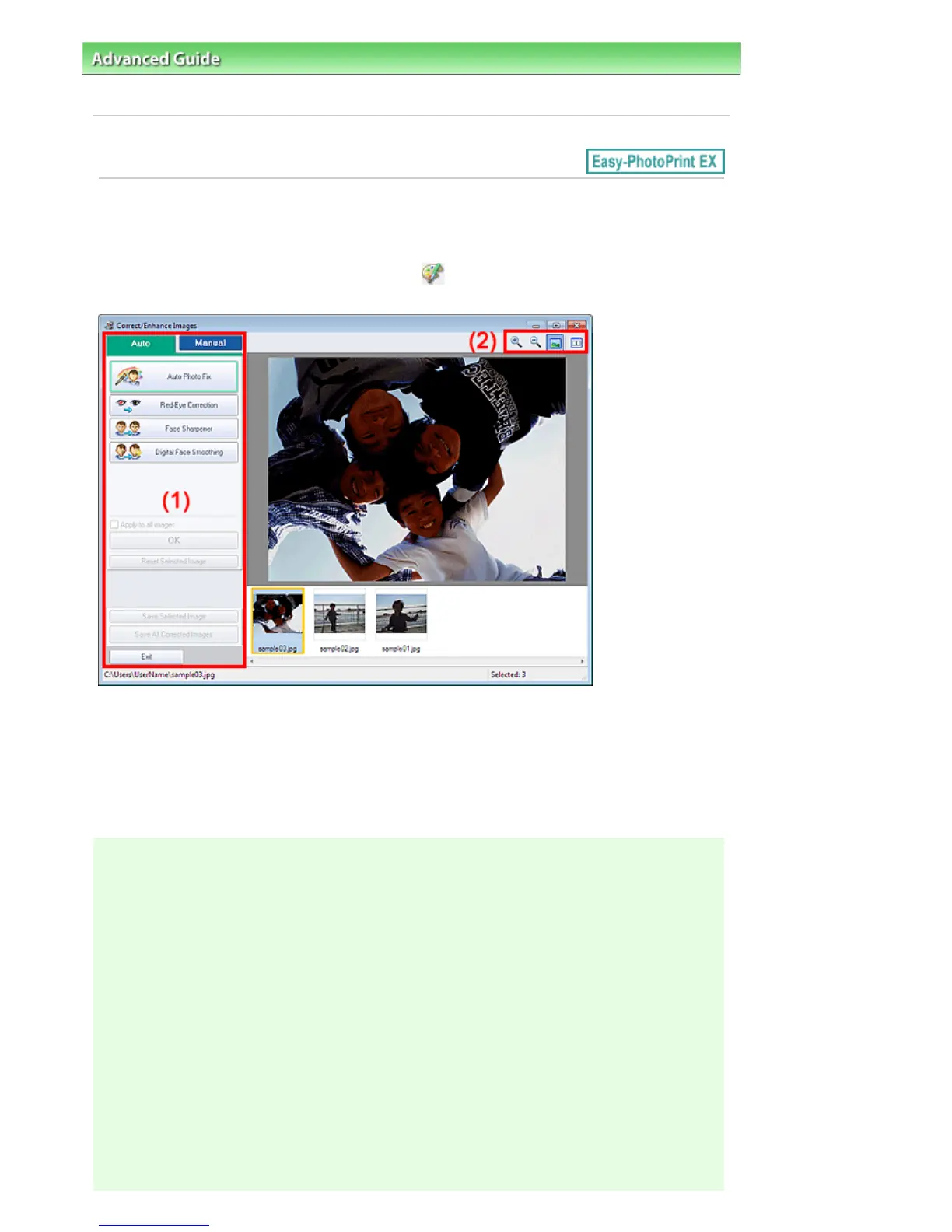 To display the Correct/Enhance Images window, click (Correct/Enhance Images) in the Select
