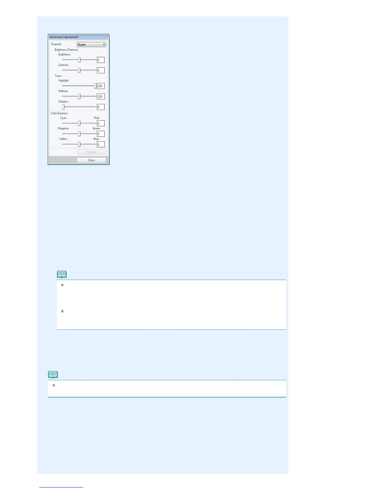 color tone are adjusted in the Advanced Adjustment dialog box.
