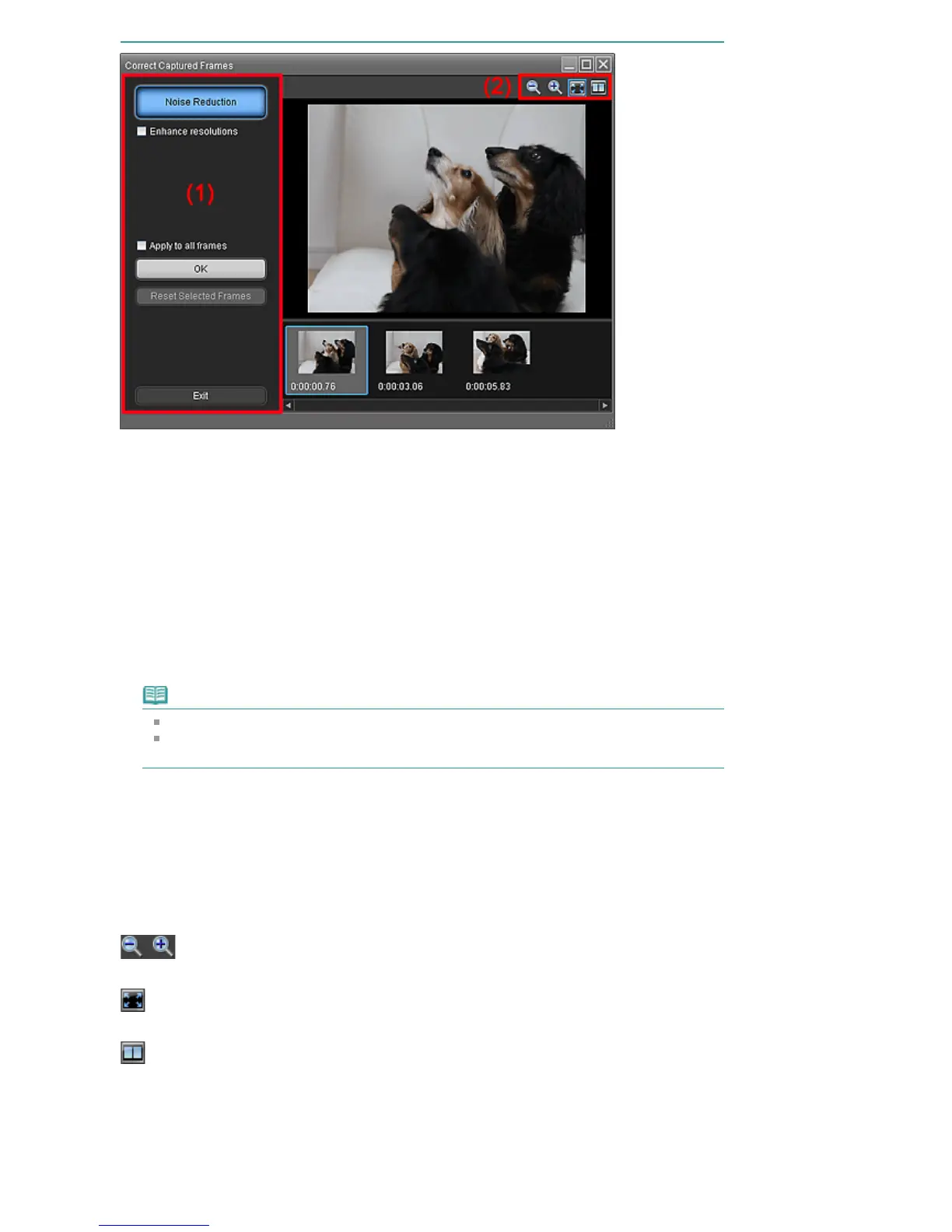 Closes the Correct Captured Frames window and returns to the Video Frame Capture or Movie