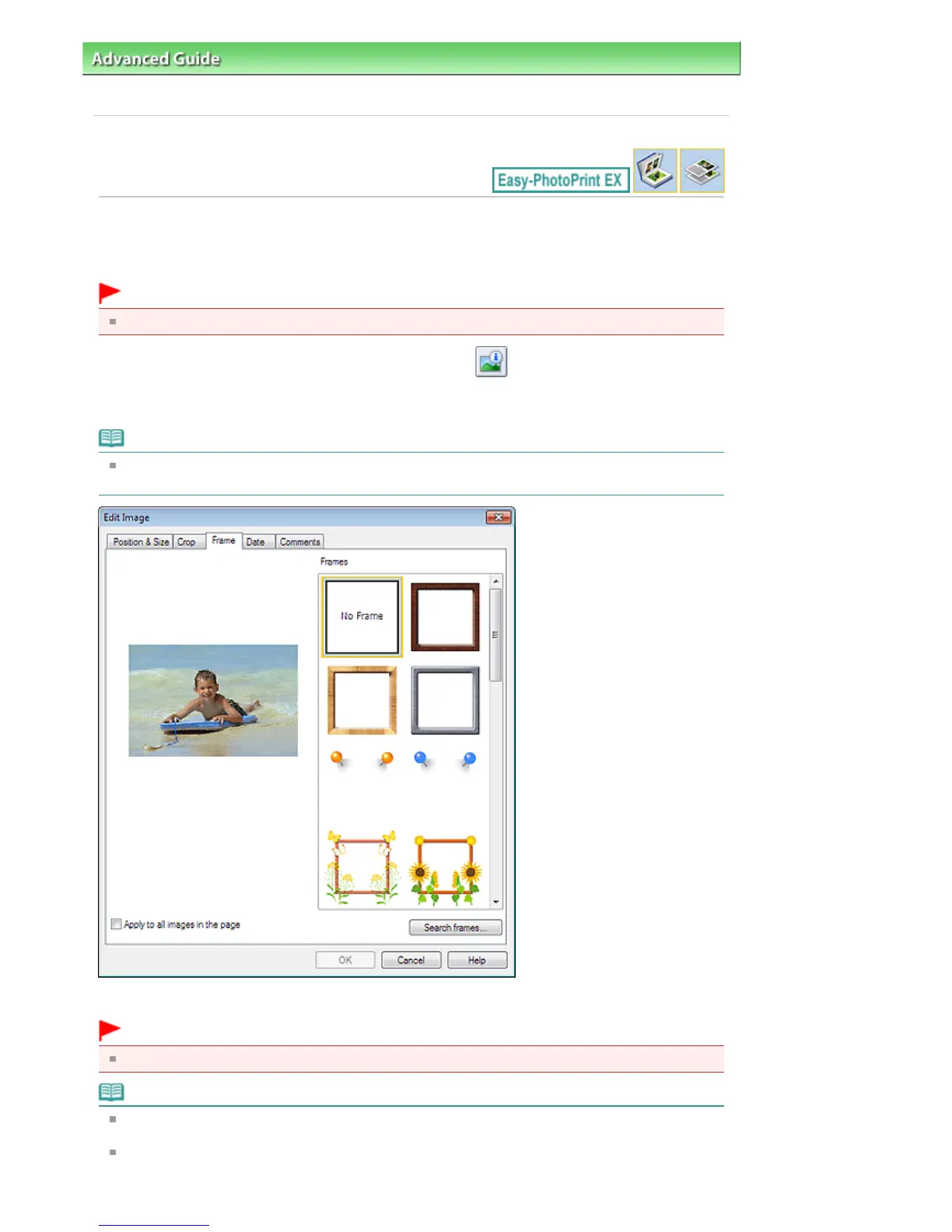 Select the image you want to frame in the Edit screen and click (Edit Image) or double-click the