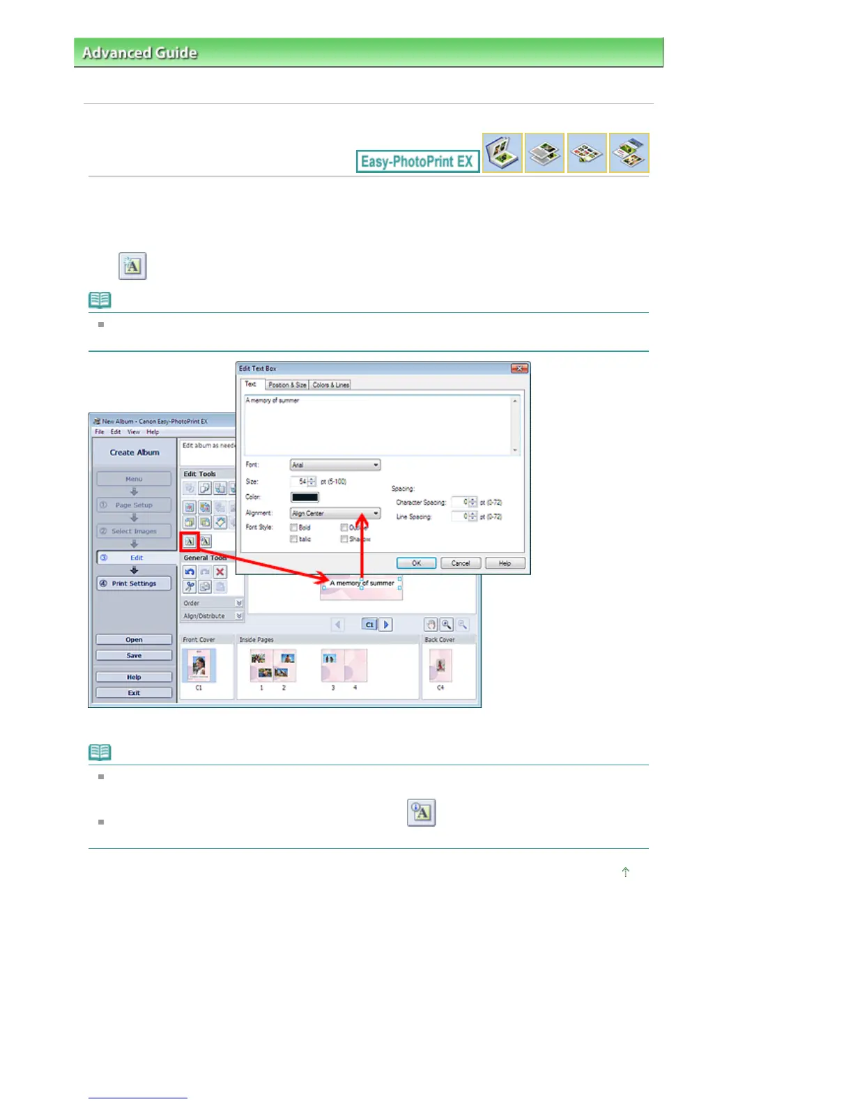 (Add Text) in the Edit screen and drag the mouse over the area in which you want to add text.