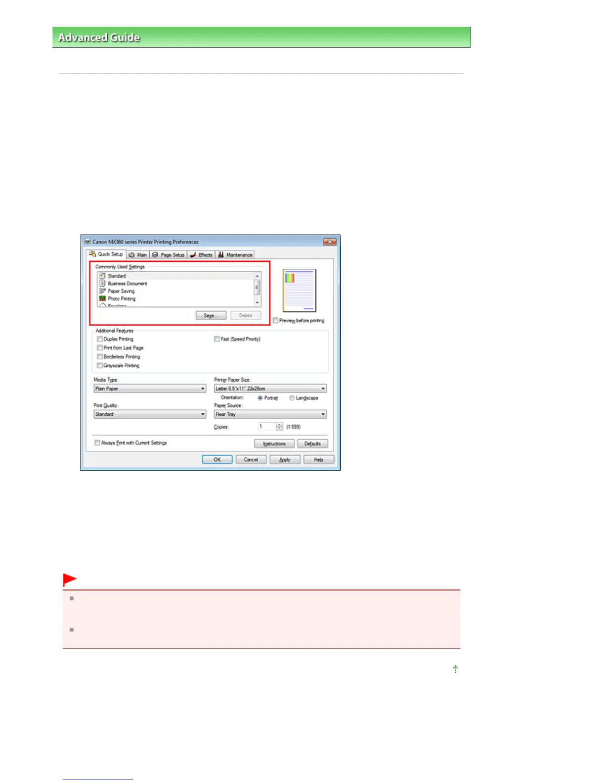 In Commonly Used Settings on the Quick Setup tab, select a printing profile suited for the purpose.