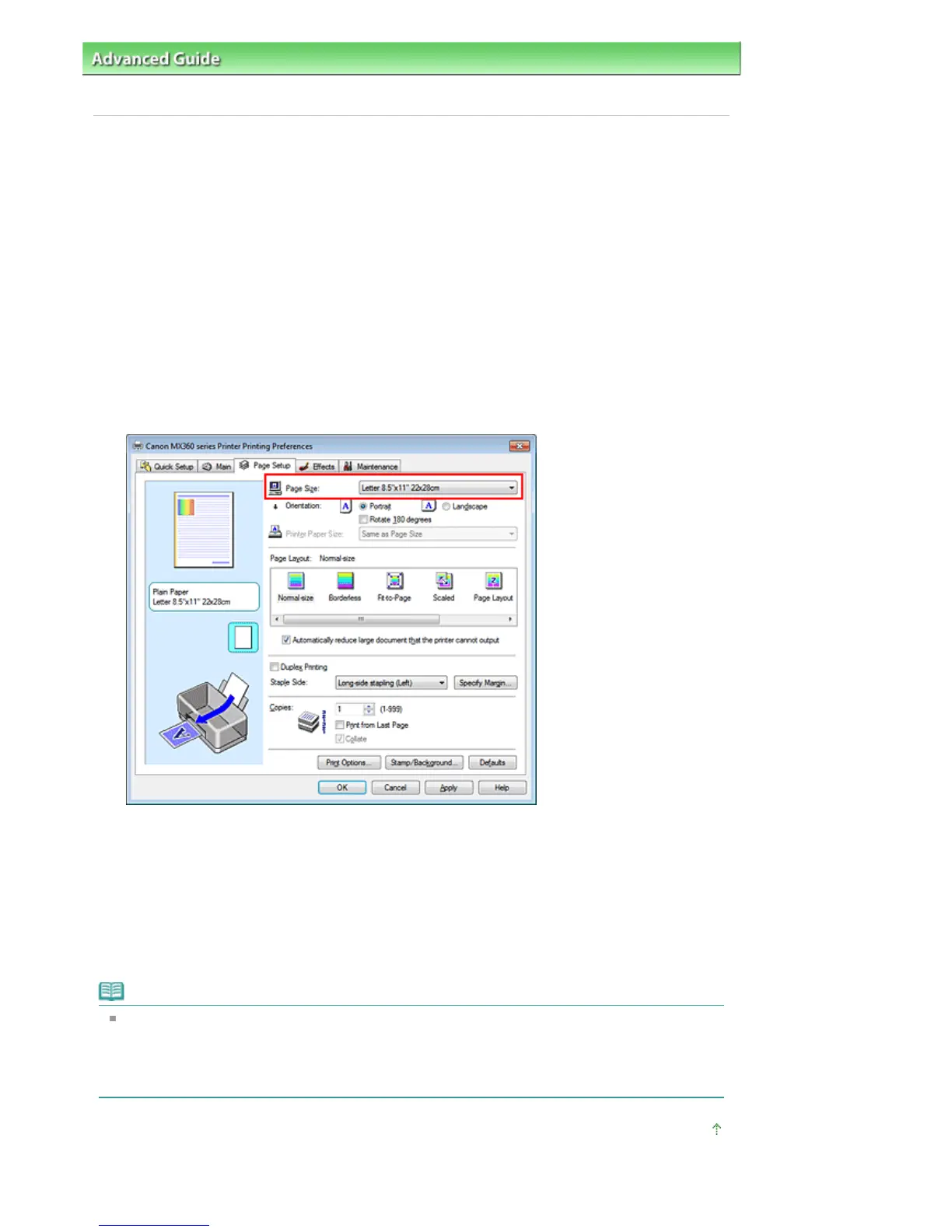 size and orientation set for Page Size and Orientation on the Page Setup tab are same as those set with