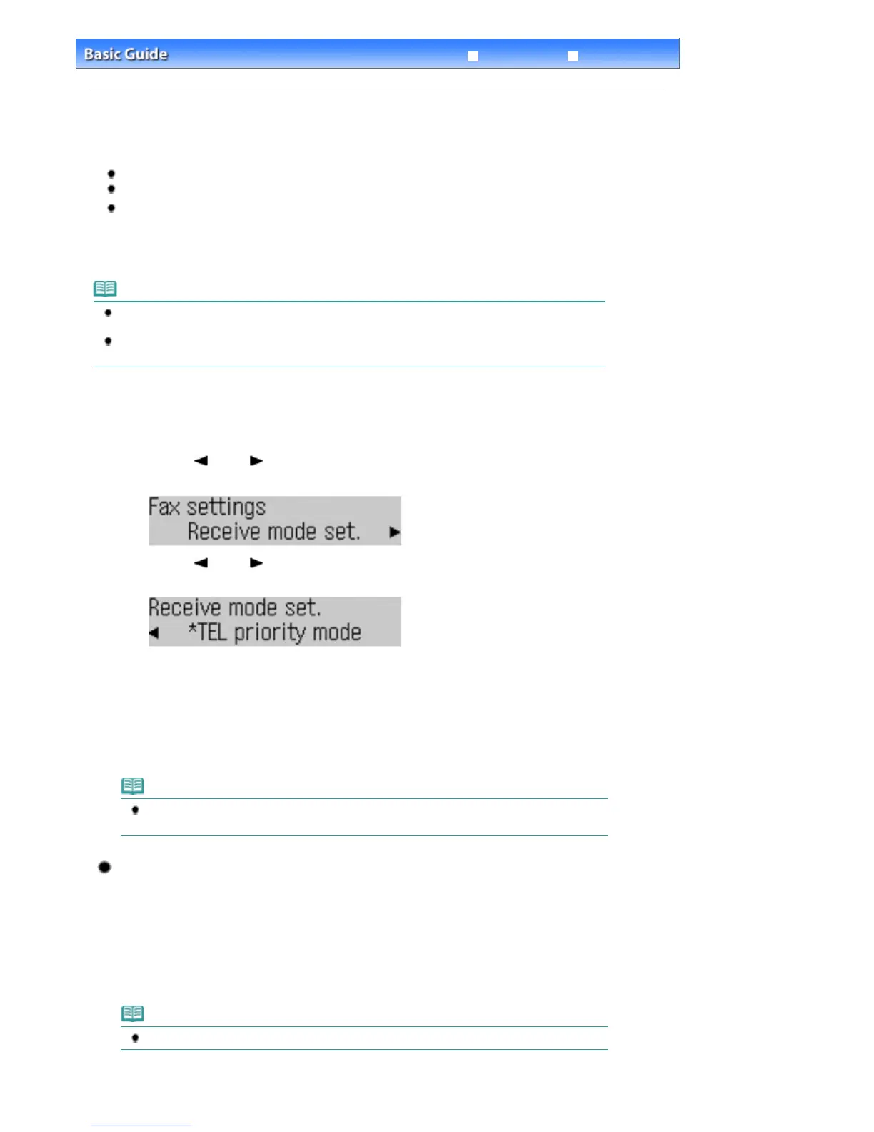 For the receiving method depending on each receive mode, see Receiving Faxes