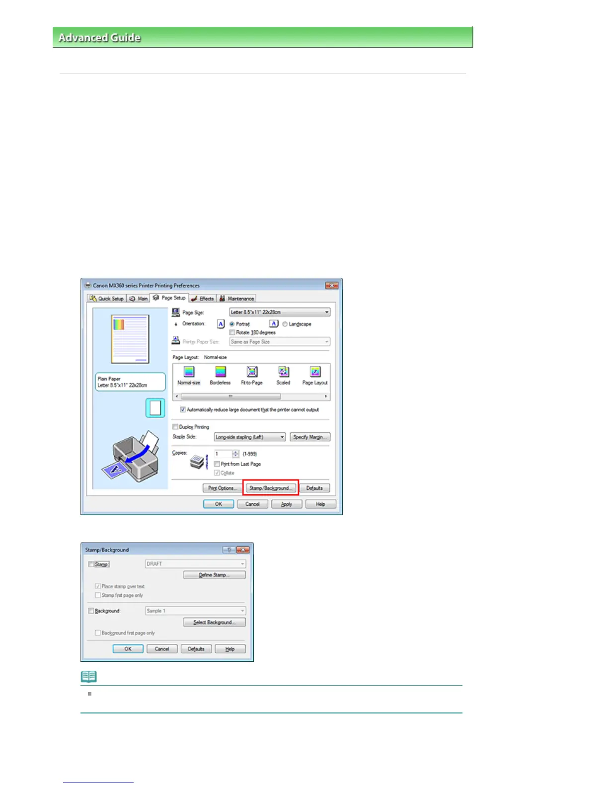 Click Stamp/Background... (Stamp...) on the Page Setup tab