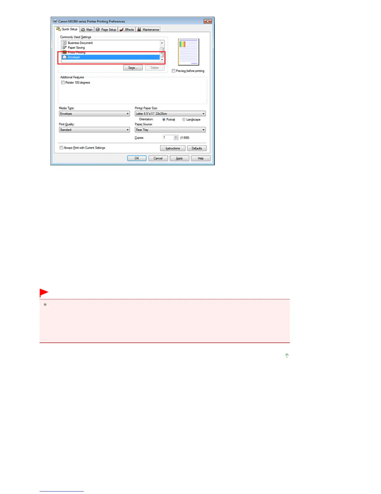 When you execute envelope printing, guide messages are displayed.