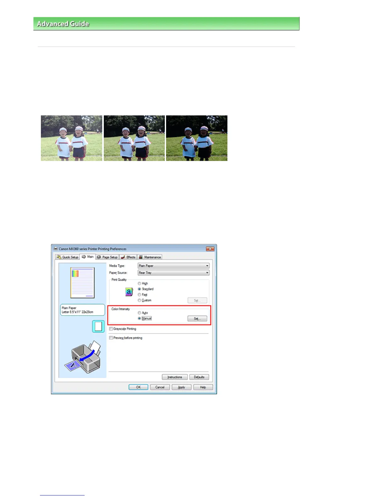On the Main tab, select Manual for Color/Intensity, and click Set....