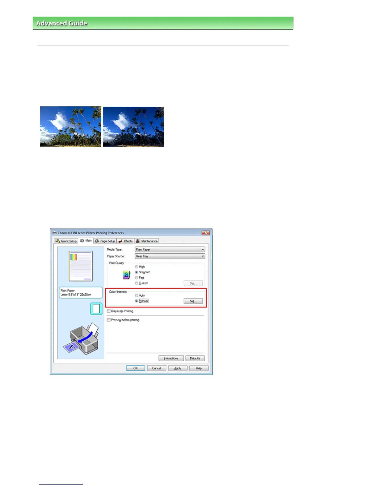 You can also set intensity on the Quick Setup tab by choosing Photo Printing under Commonly Used