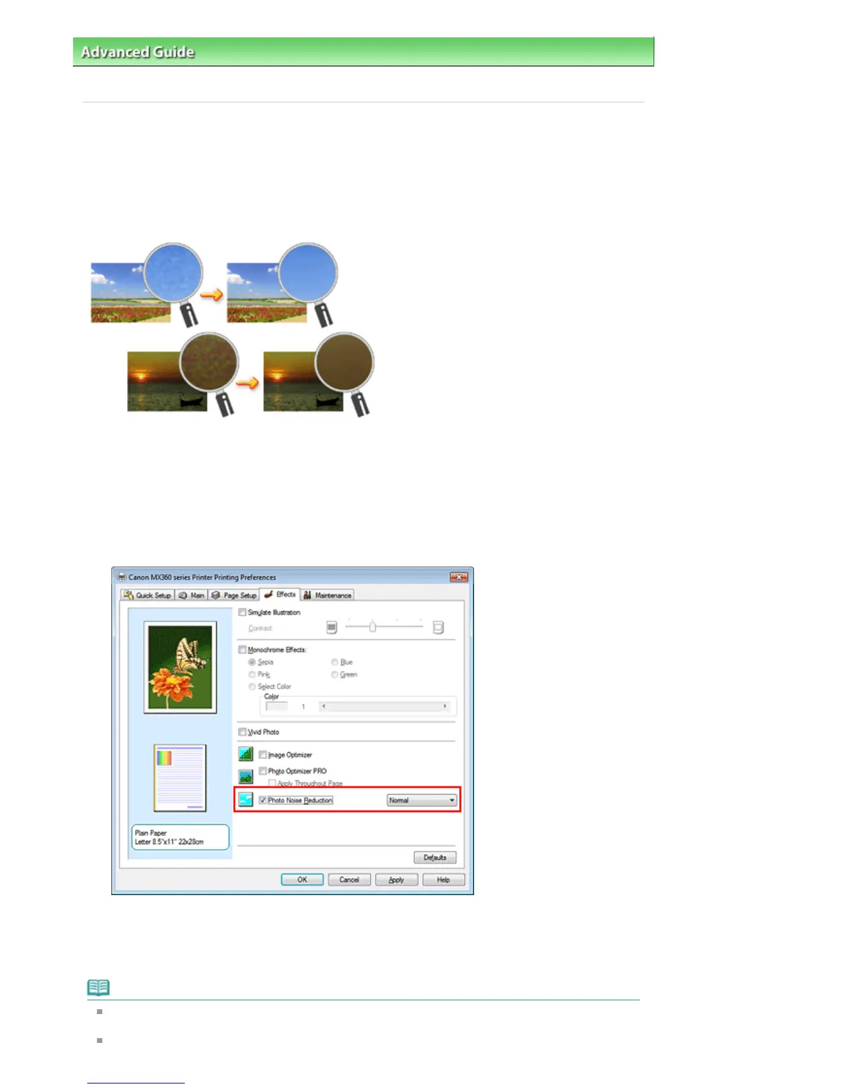 With the Photo Noise Reduction function, you can reduce the digital camera noise and improve the