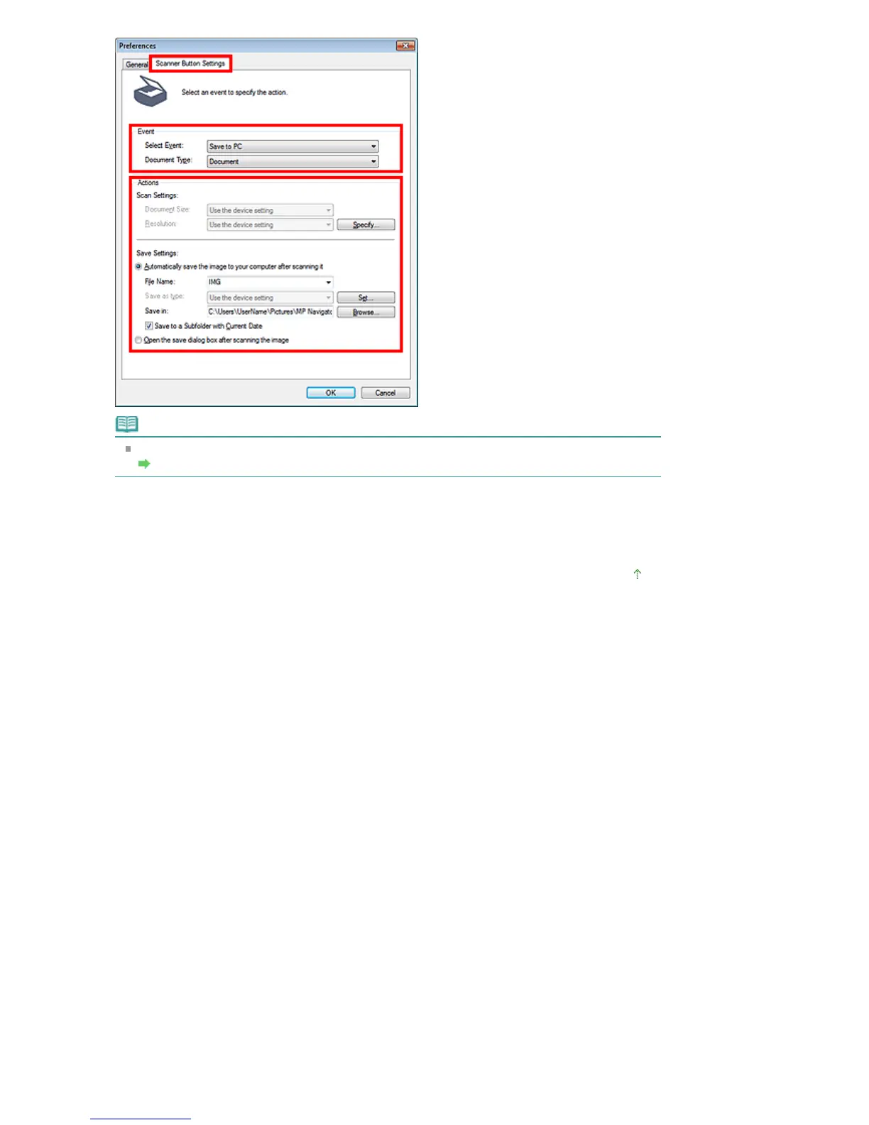 Scanner Button Settings Tab (Save to PC)