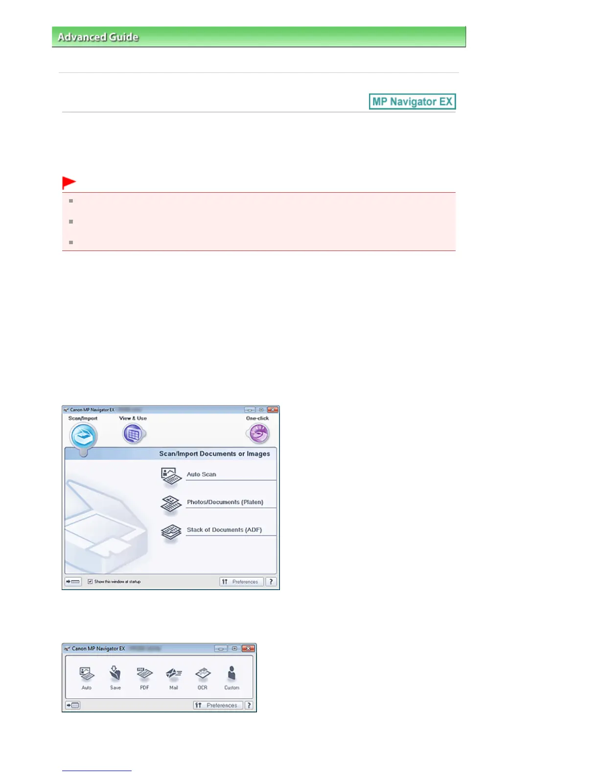 MP Navigator EX is an application that enables you to easily scan photos and documents. It is suitable