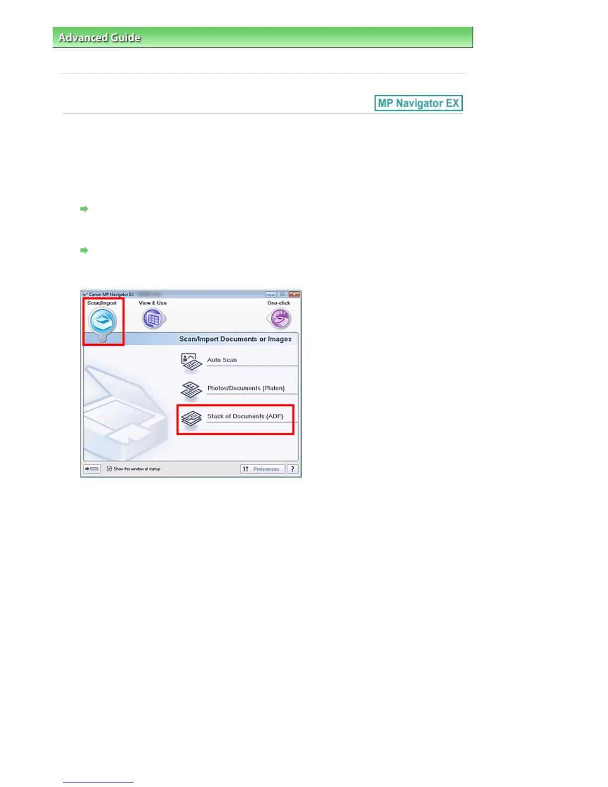 Place multiple documents on the ADF (Auto Document Feeder) and scan at one time.