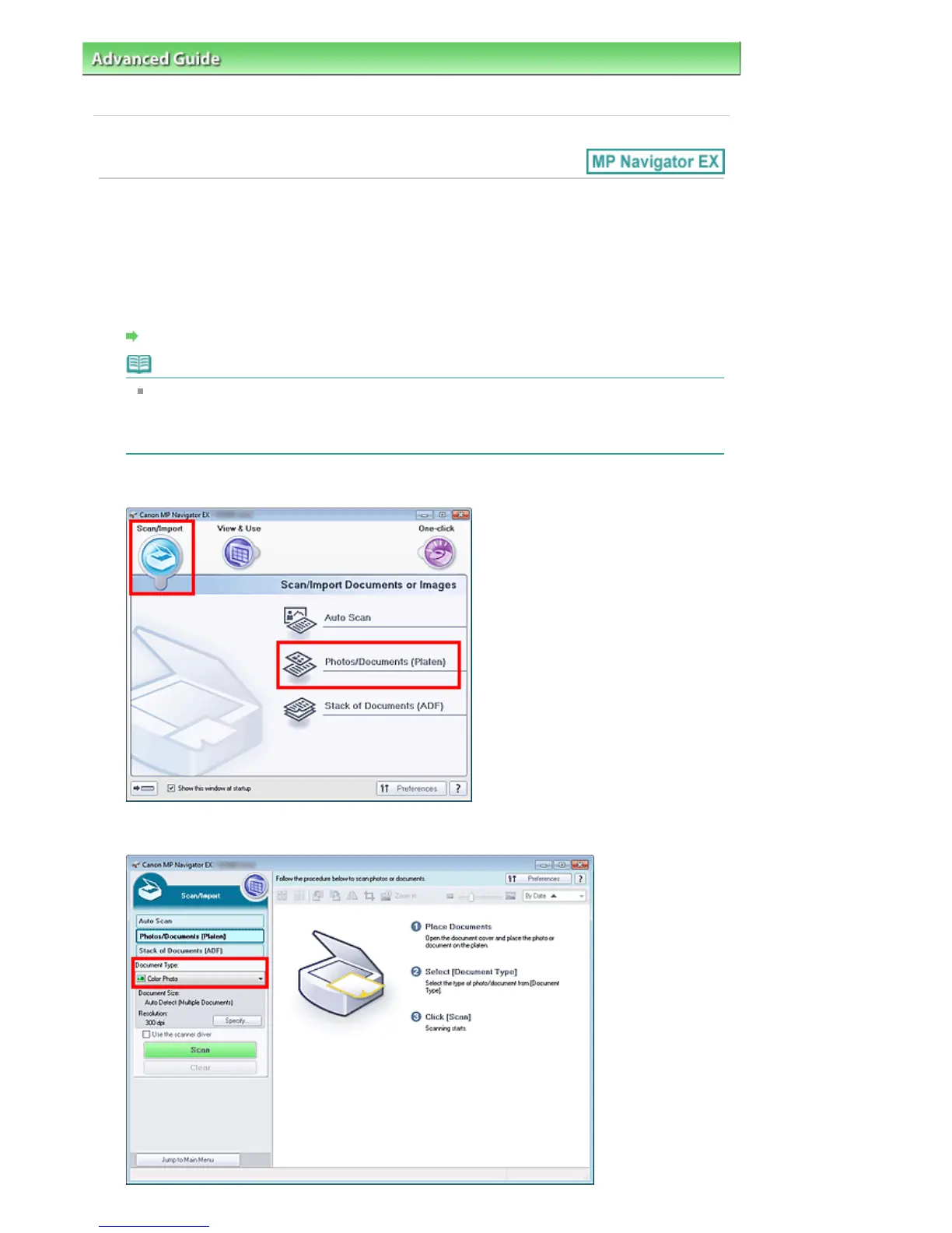 In Scan/Import, click Photos/Documents (Platen).