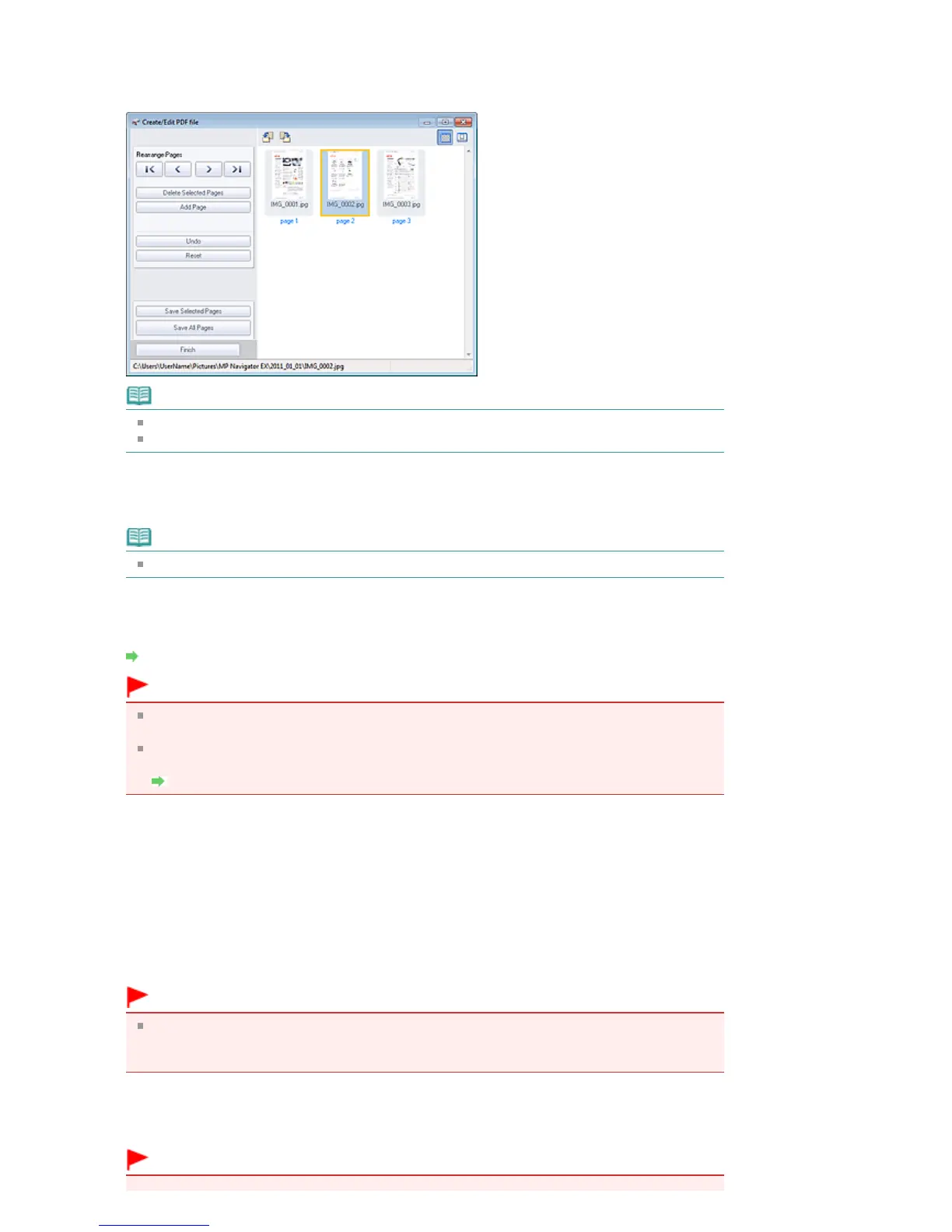 For PDF files, you can only select those created with MP Navigator EX. You cannot select PDF
