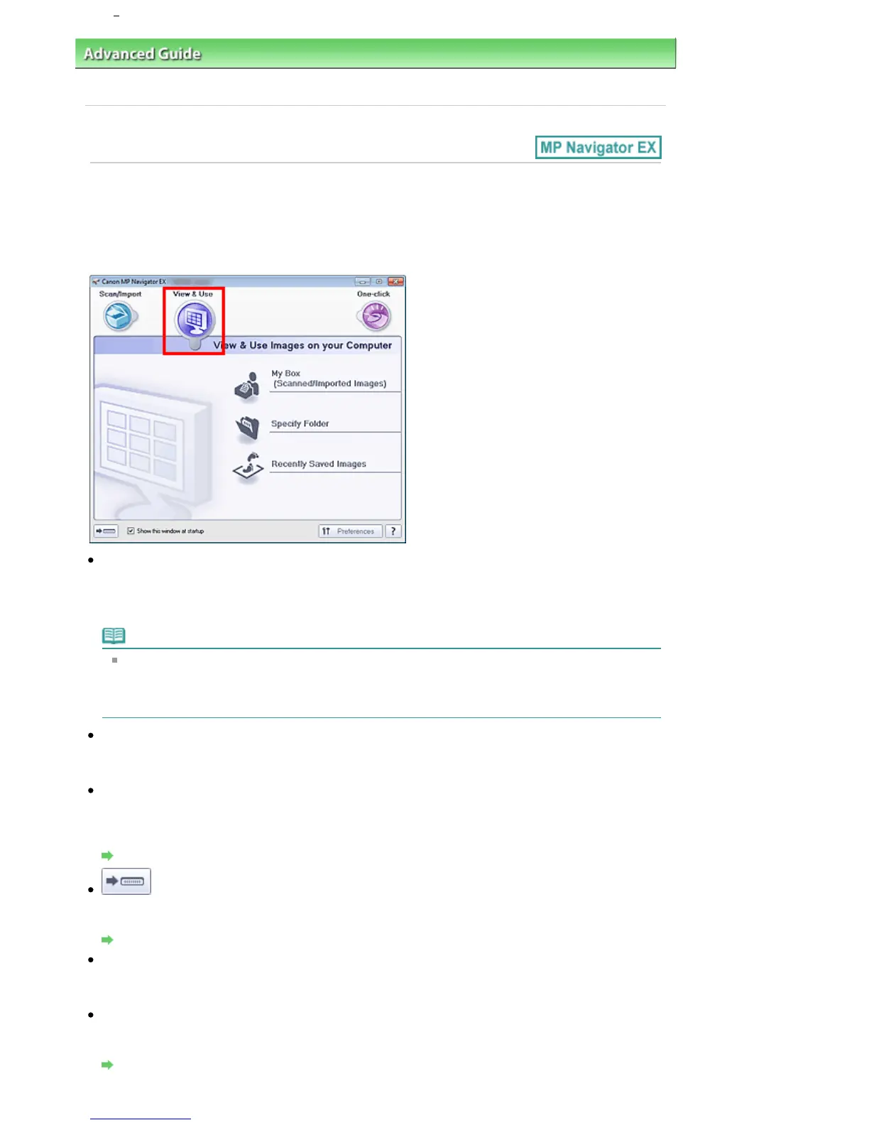 Opens the View & Use window with My Box (Scanned/Imported Images) selected.