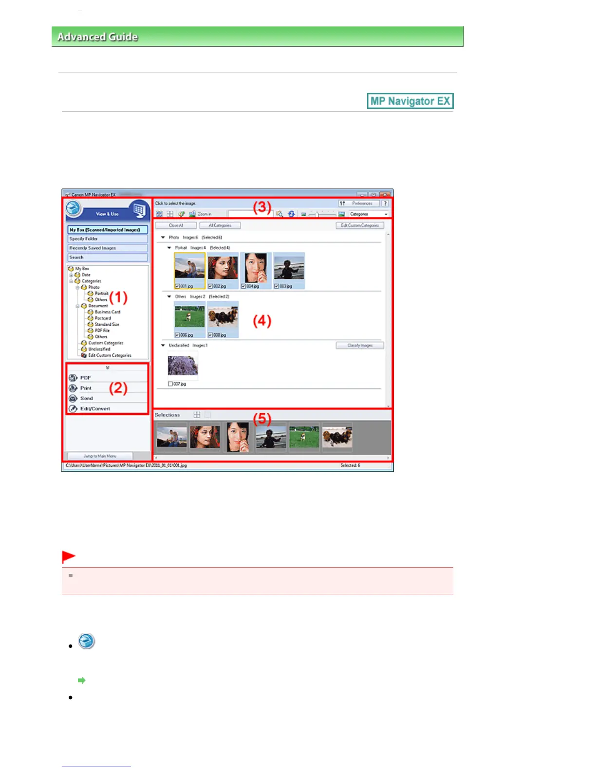 For PDF files, only those created with MP Navigator EX are displayed. You cannot display PDF files