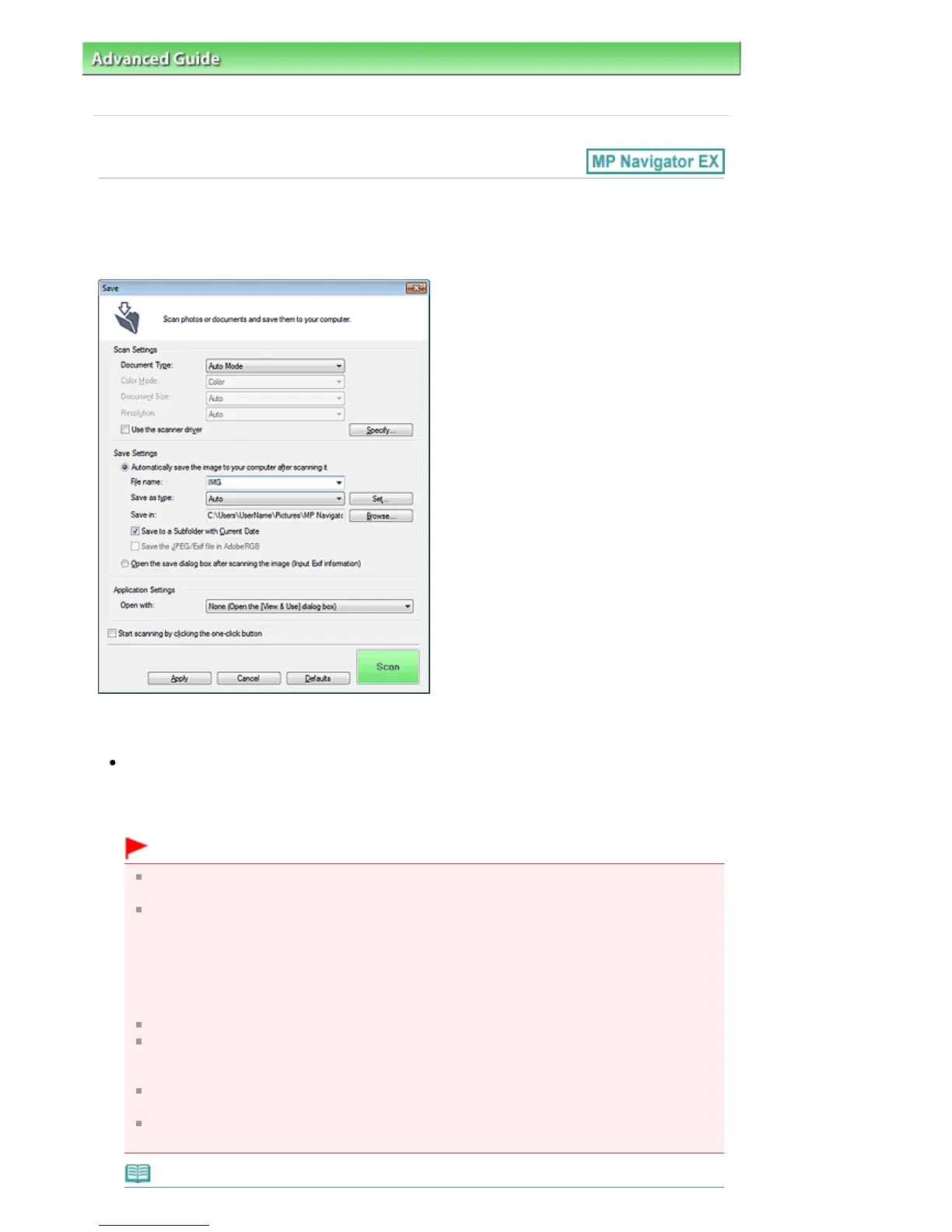Select the type of document to be scanned. When Auto Mode is selected, the document type is