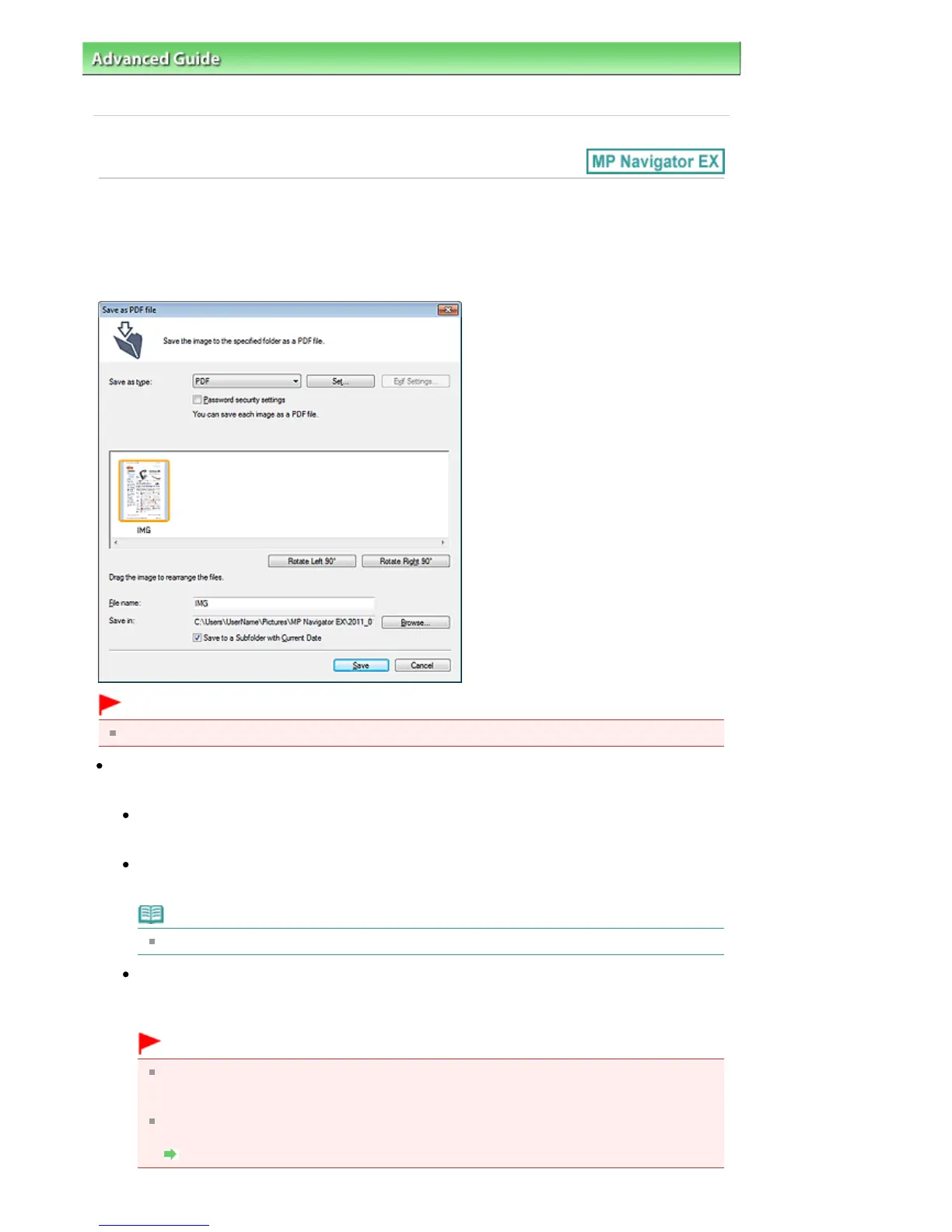 In the Save as PDF file dialog box, you can make settings for saving images to a computer.