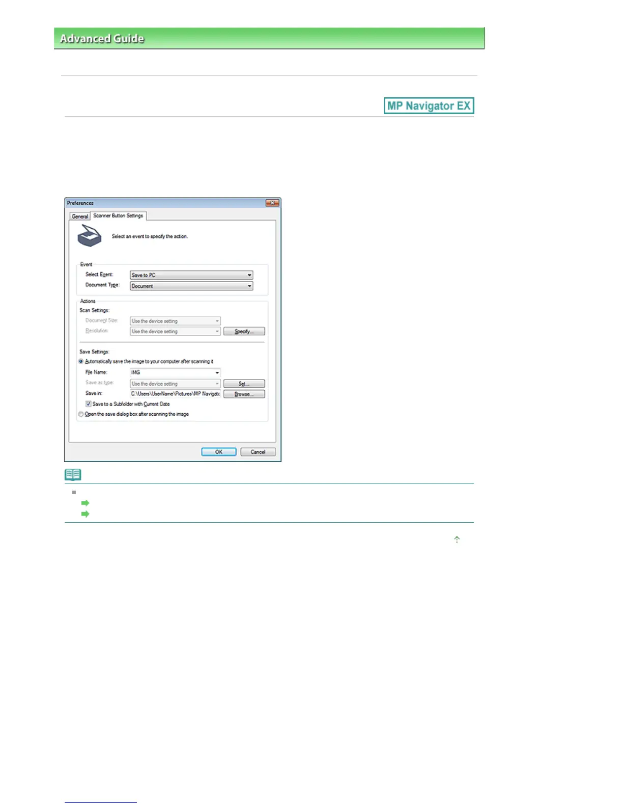 Scanner Button Settings Tab (Save to PC)