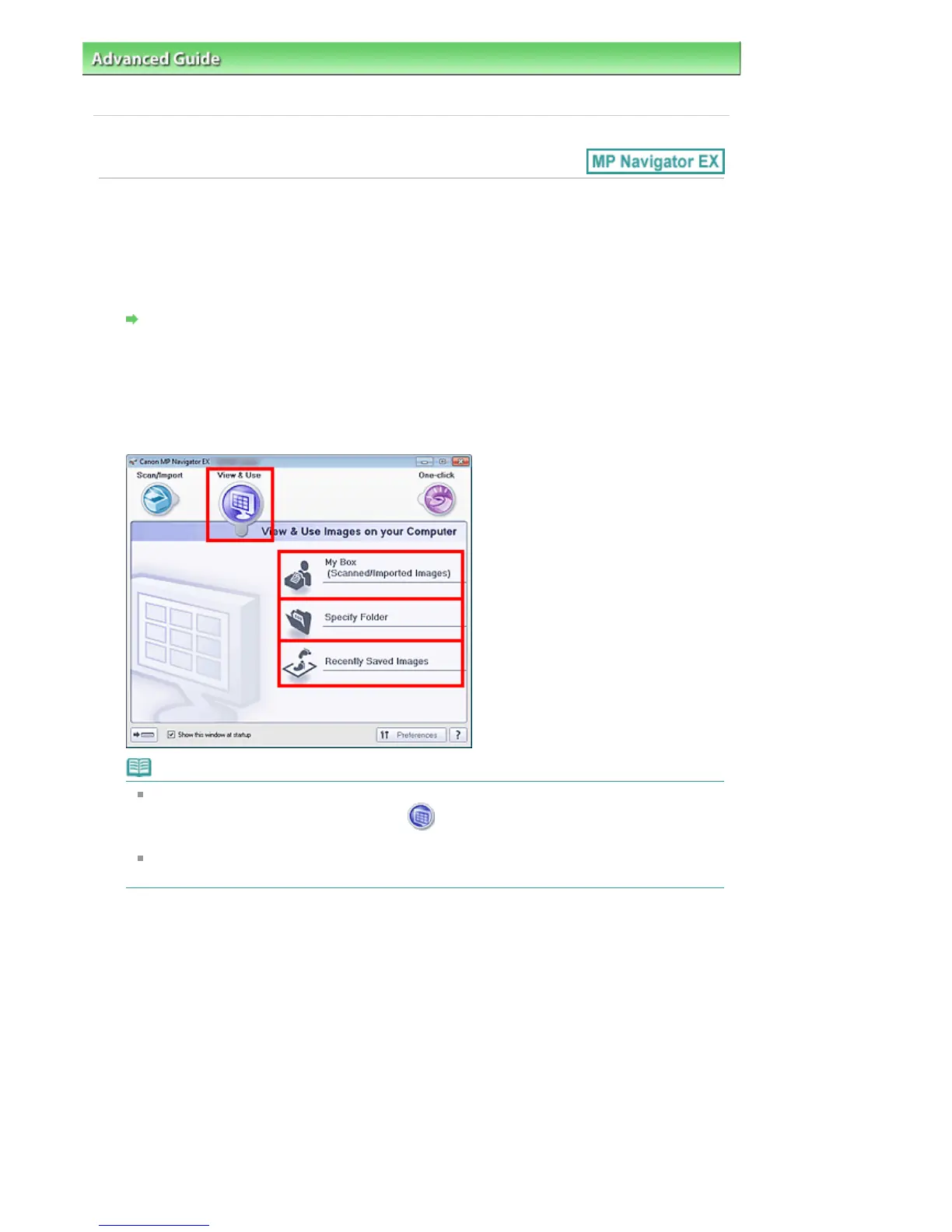 the Scan/Import window is displayed, click (View & Use) on the upper left of the screen.