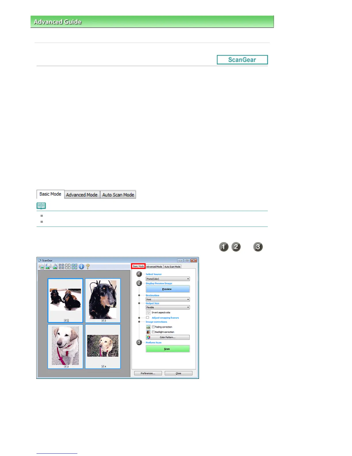 Use the Basic Mode tab to scan easily by following three simple on-screen steps (