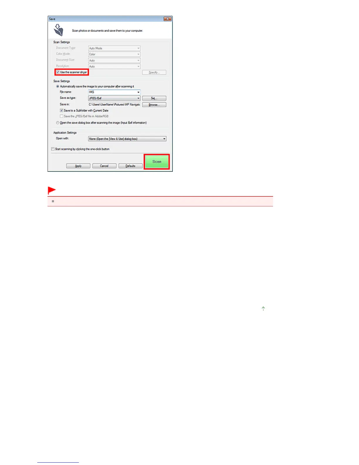 Use the scanner driver is not displayed in the Auto Scan dialog box or PDF dialog box.