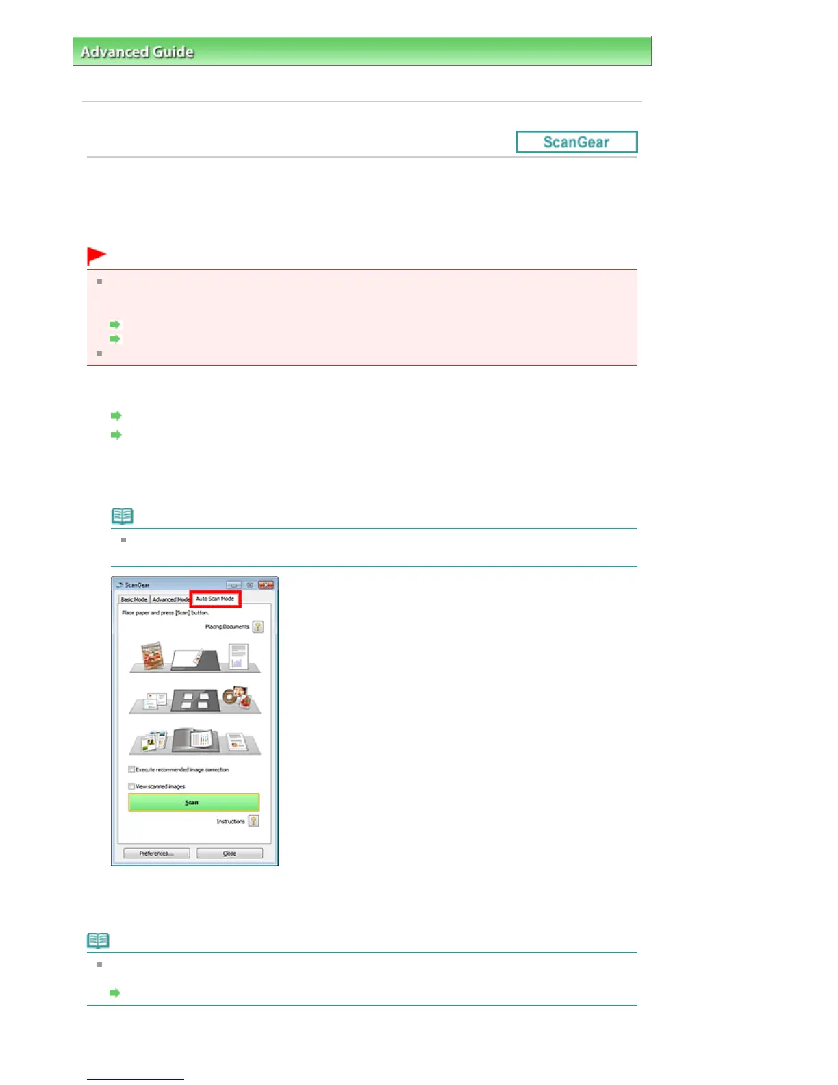 Use the Auto Scan Mode tab to scan easily by automatically detecting the type of document placed on the