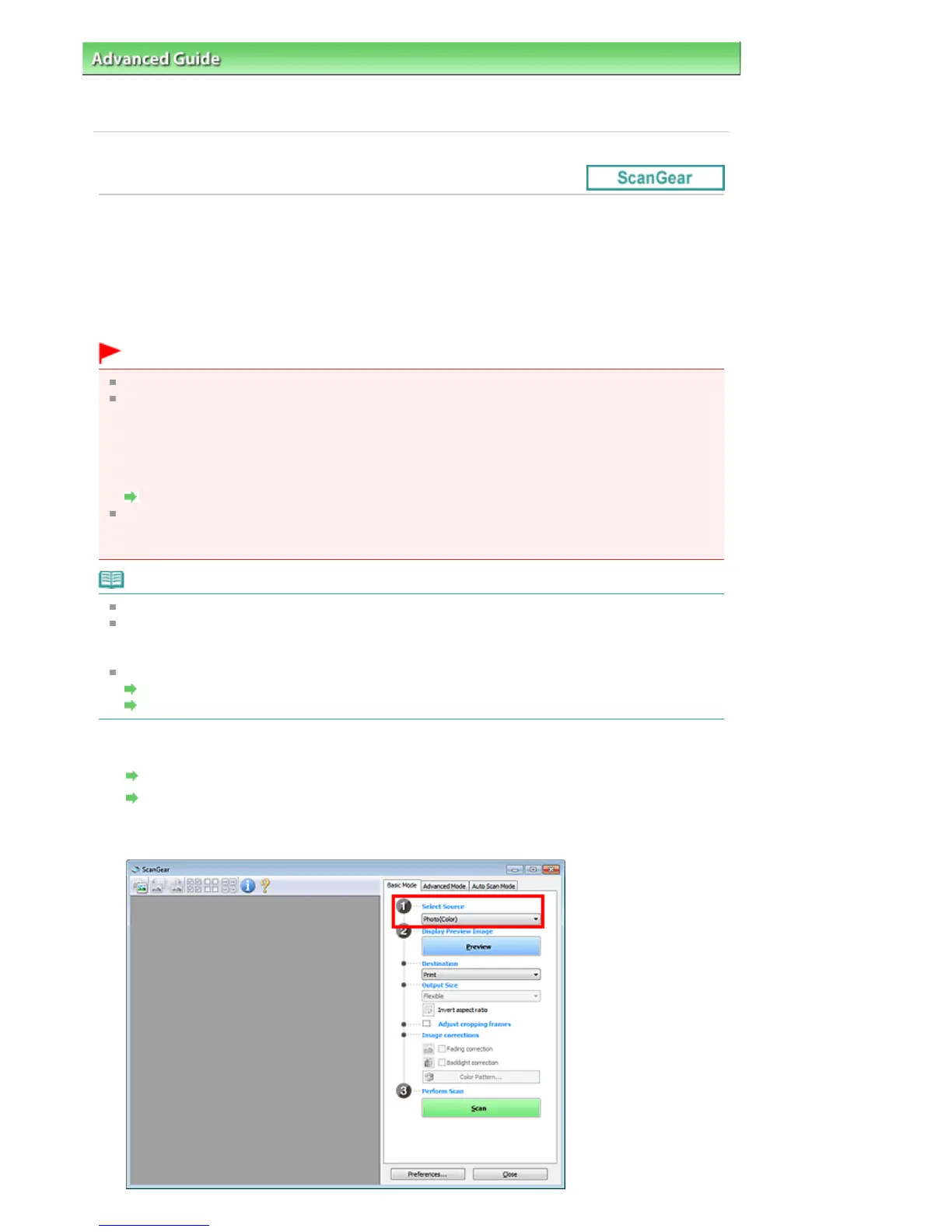 Mode tab to make advanced scan settings such as the color mode, output resolution, image
