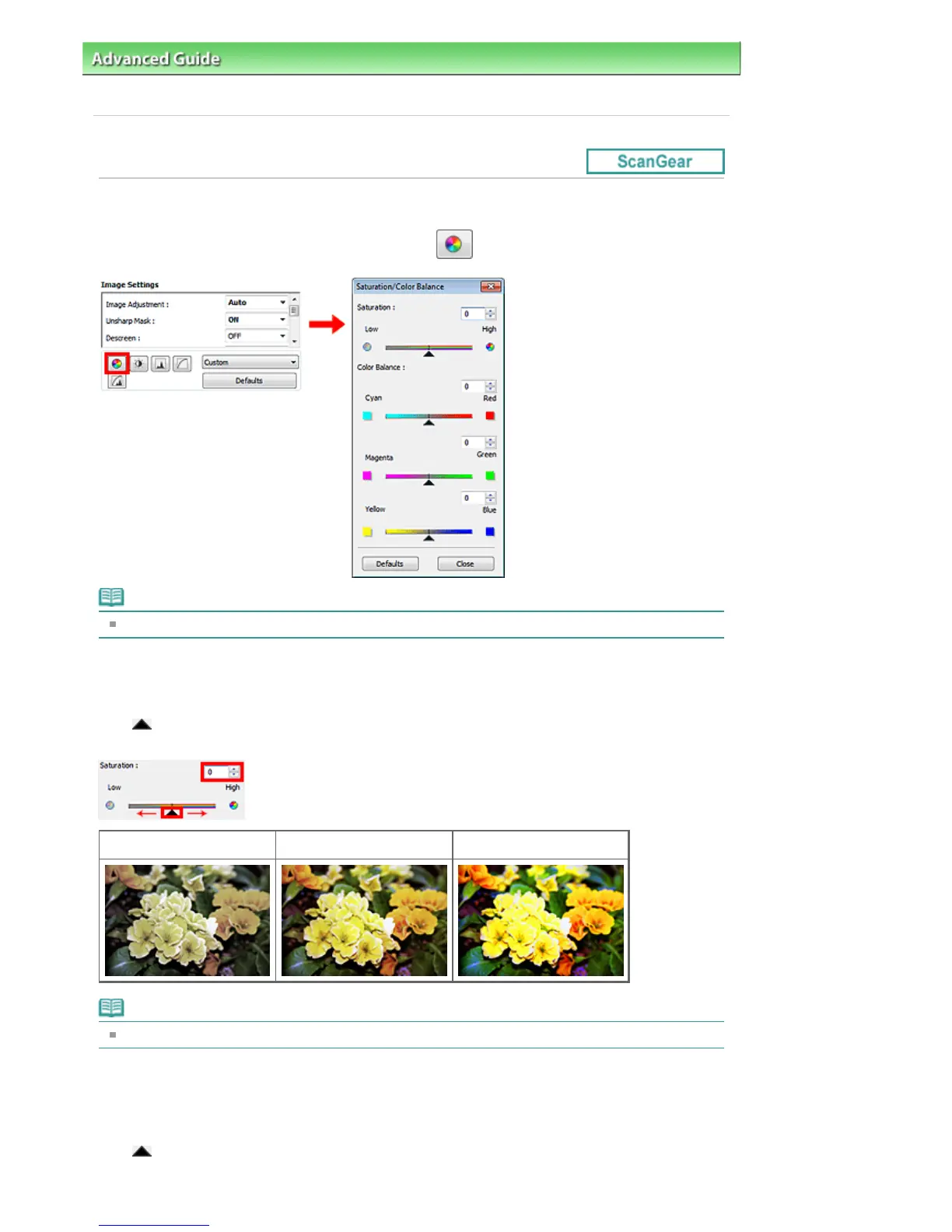 Adjusting Colors with ScanGear (Scanner Driver) > Adjusting Saturation and Color Balance