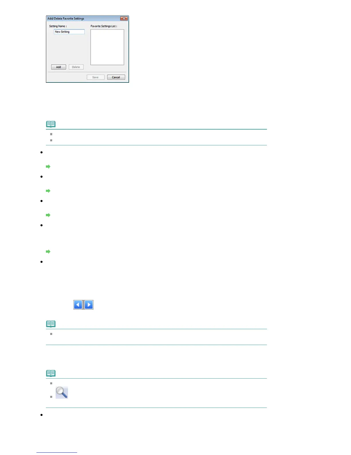 To delete an item, select it in Favorite Settings List and click Delete. Click Save to save settings