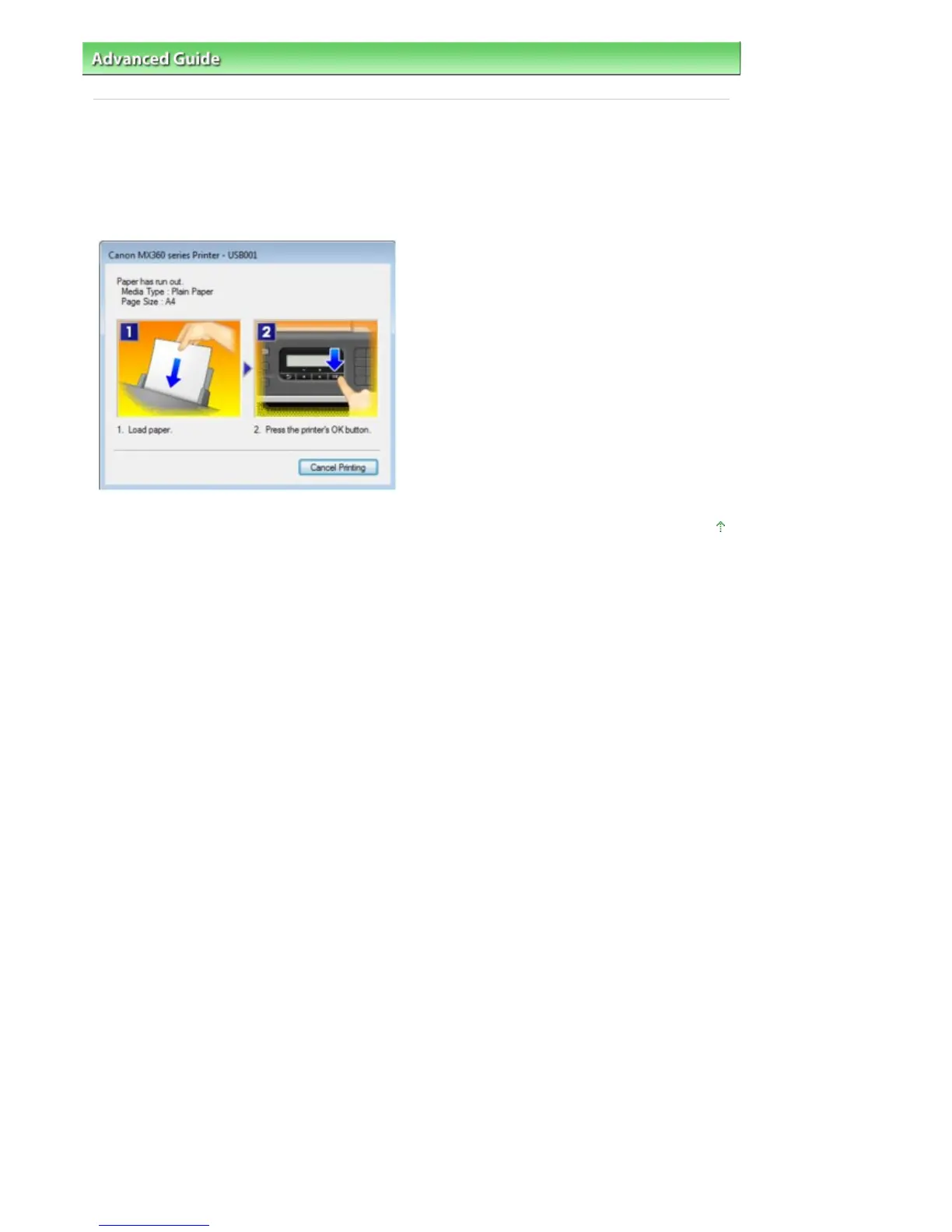 When an error occurs in printing such as the machine is out of paper or paper is jammed, a