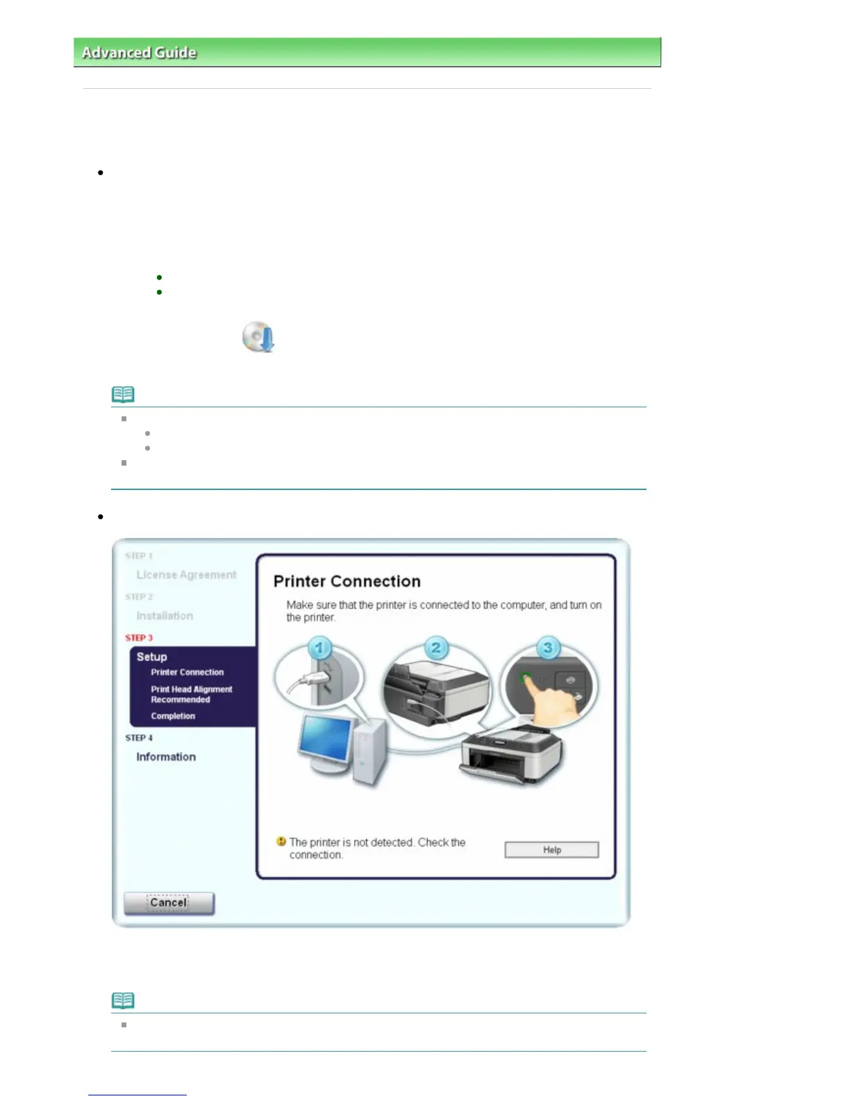 If you are unable to proceed beyond the Printer Connection screen, make sure that the USB cable is