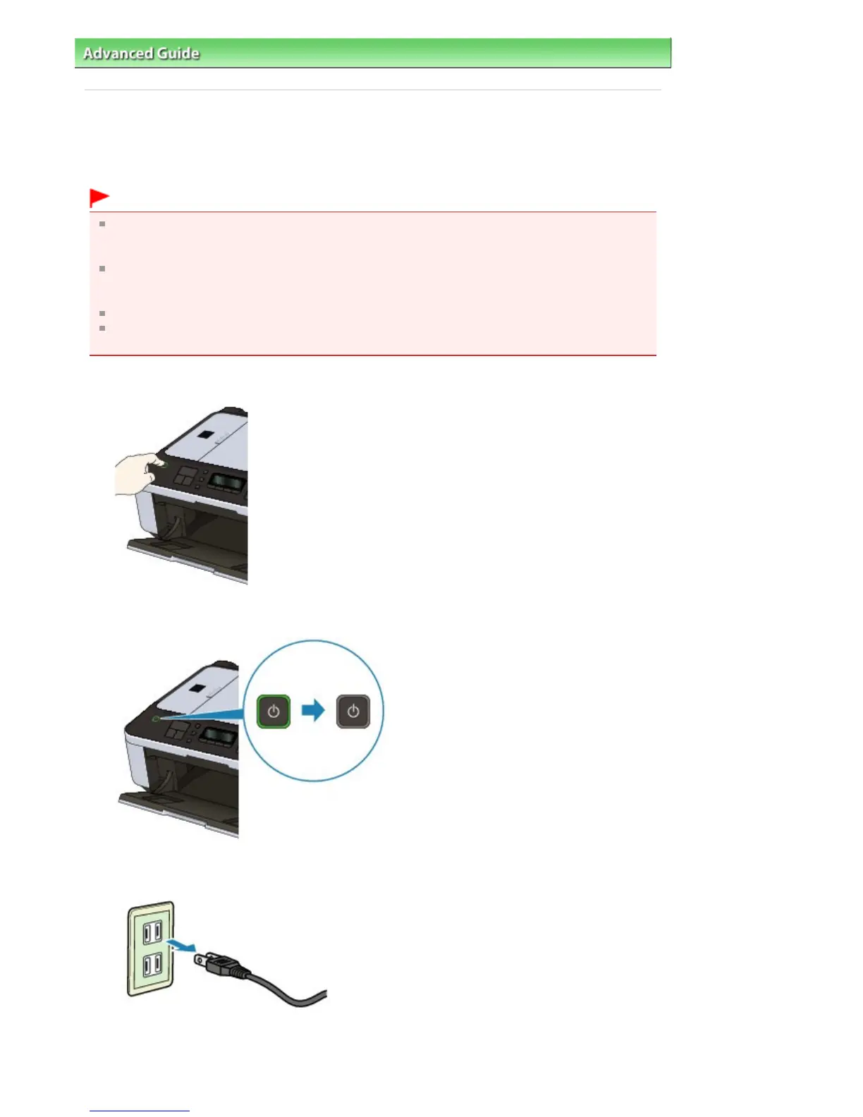 Unplugging the power cord while the machine is still on may cause drying or clogging of the Print