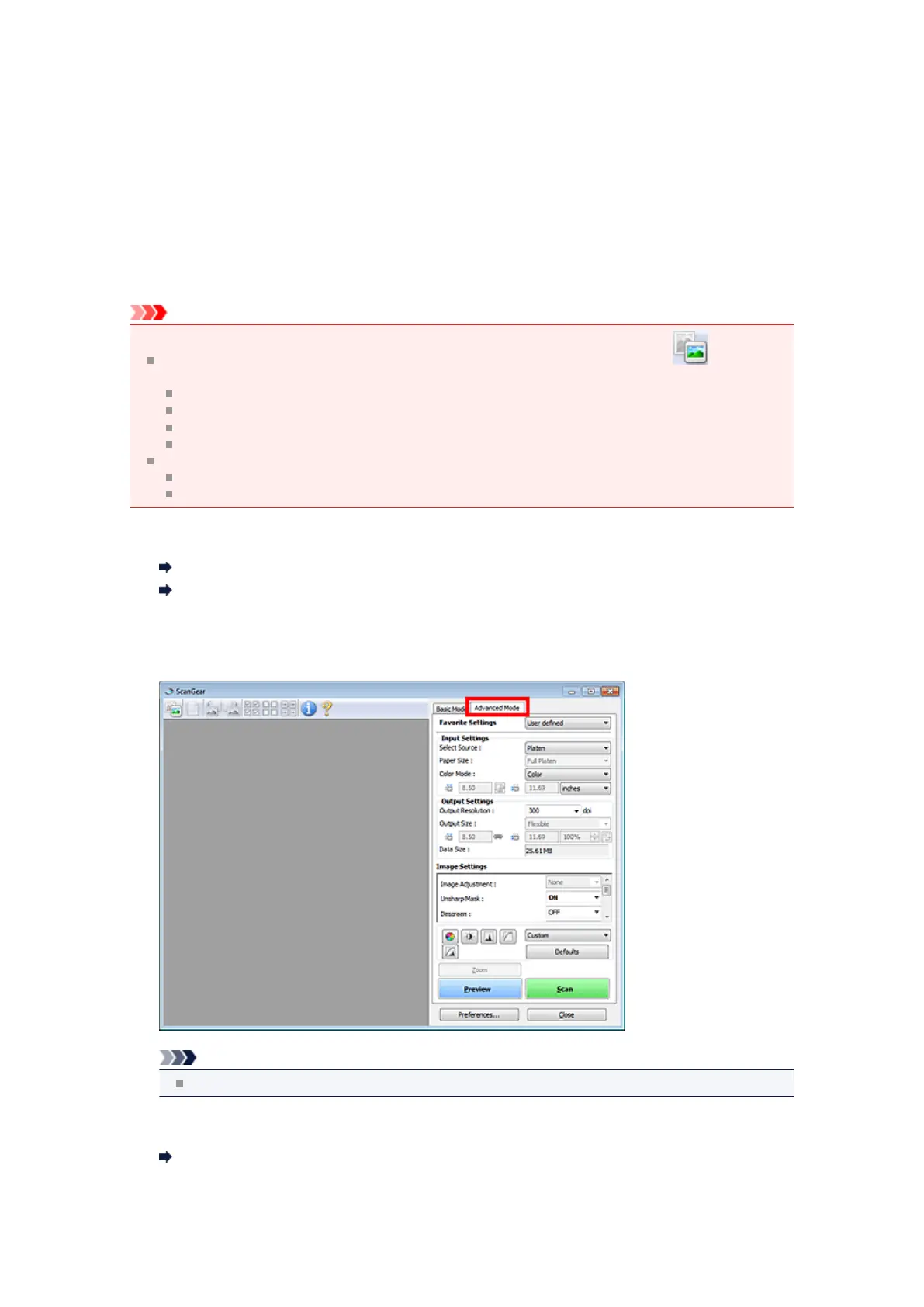 Scanning in Advanced Mode