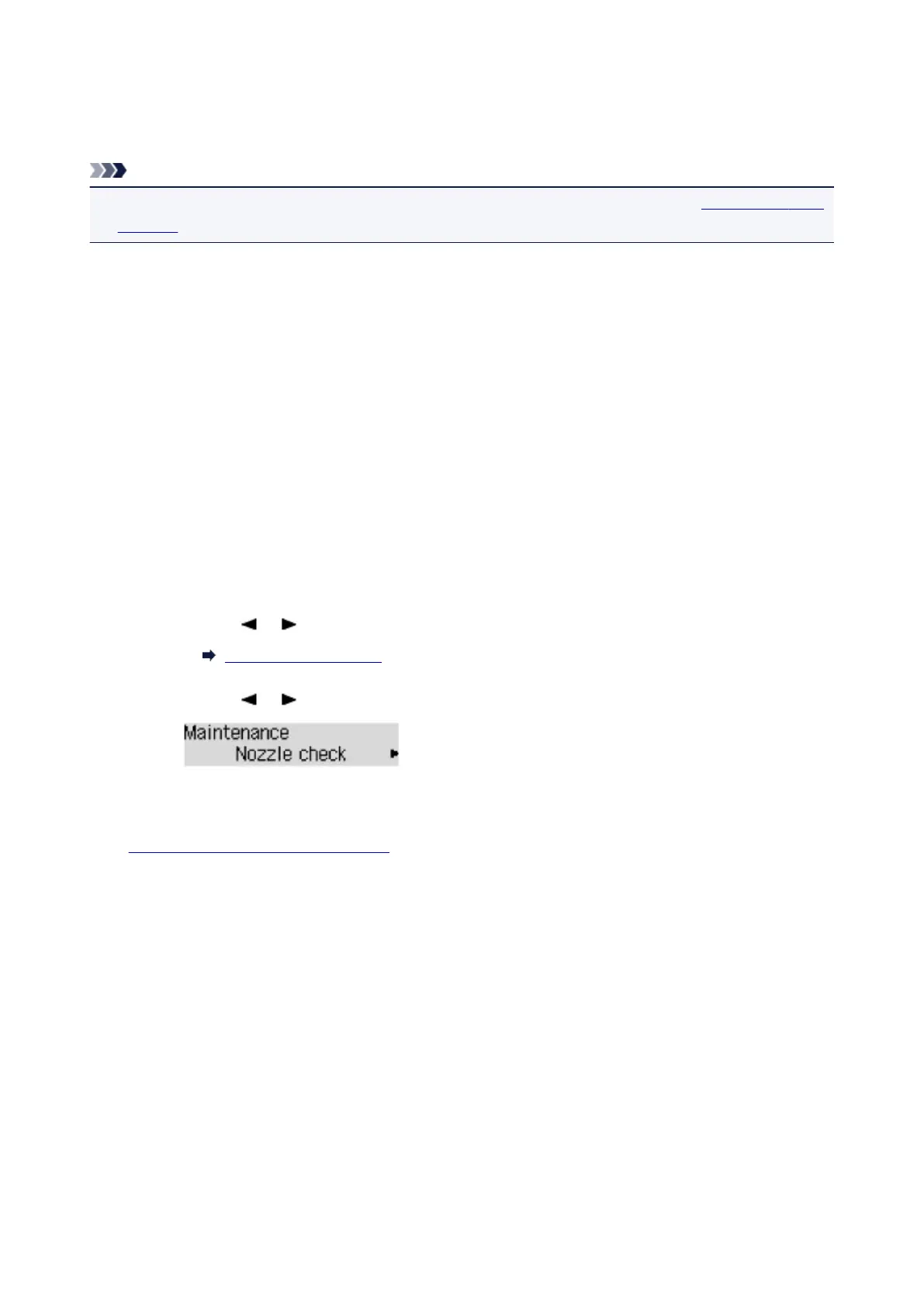 • If the remaining ink level is low, the nozzle check pattern will not be printed correctly. Replace the FINE